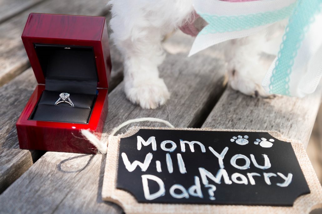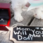 Andrew followed through to Act Two by planning a memorable and touching surprise proposal. This had to involve the couple’s star players, two adorable Shih Tzu’s, Missy and Mia. Conspiring with Karen’s BFFs, Andrew had them set up a girls-only brunch date, one that would require a trip into Gantry Park in Long Island City. Missy and Mia were coiffed and bedecked in special ribbons and handmade signs to pop the question. Bouquet of white tulips in one hand and dog leads in the other, Andrew made his way to a secret point in the park. The plan worked admirably, for Act Three. Karen was completely and utterly surprised. Missy and Mia performed their roles without dropping a beat, delivering the all-important question. His intended loved the ring and happily, said, Yes. A wonderful day was had by all, full of tears, cheers and barking.