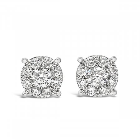 • 18k White Gold and Diamond Stardust Diamond Cluster Earrings 2001-22