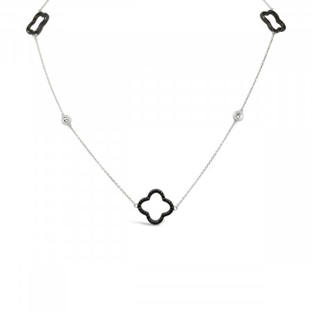 • Black & White Opera Length Diamond Trefoil Necklace 1033