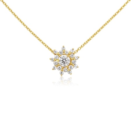 • 14K Yellow Gold Starburst Halo Pendant on Chain 1922-32