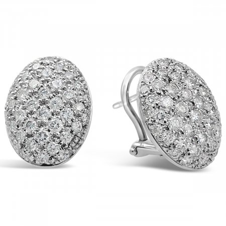 • 18k White Gold and Diamond Stardust Oval Cluster Earrings 2000-22