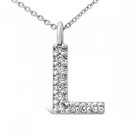• Grants Jewelry 14k White Gold & Diamond Initials, ‘L’ 1866-32