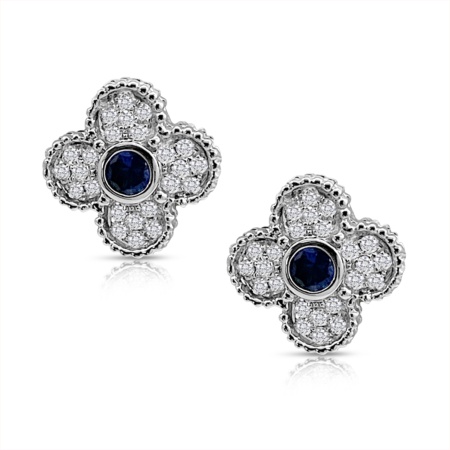 • 14k W Sapphire Diamond Clover Earrings 2397-22