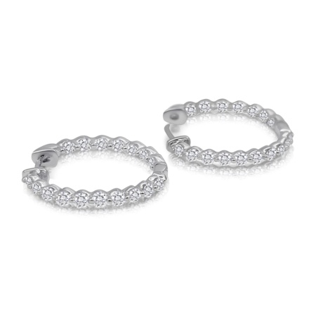 • 14k W Two Prong Inside Out Diamond Hoops 2254-23