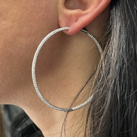 • 14k White 2.25 Inches Glittering Diamond 2 Inch Hoop Earrings 2457-23