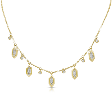 • Golden Flicker: Baguette Diamond Charm Necklace in 14K Yellow Gold 2581-43