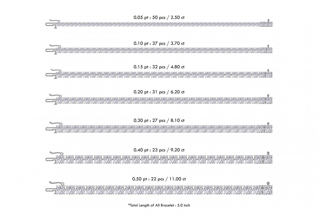 Four Prong Set Diamond Bracelets priced as follows: