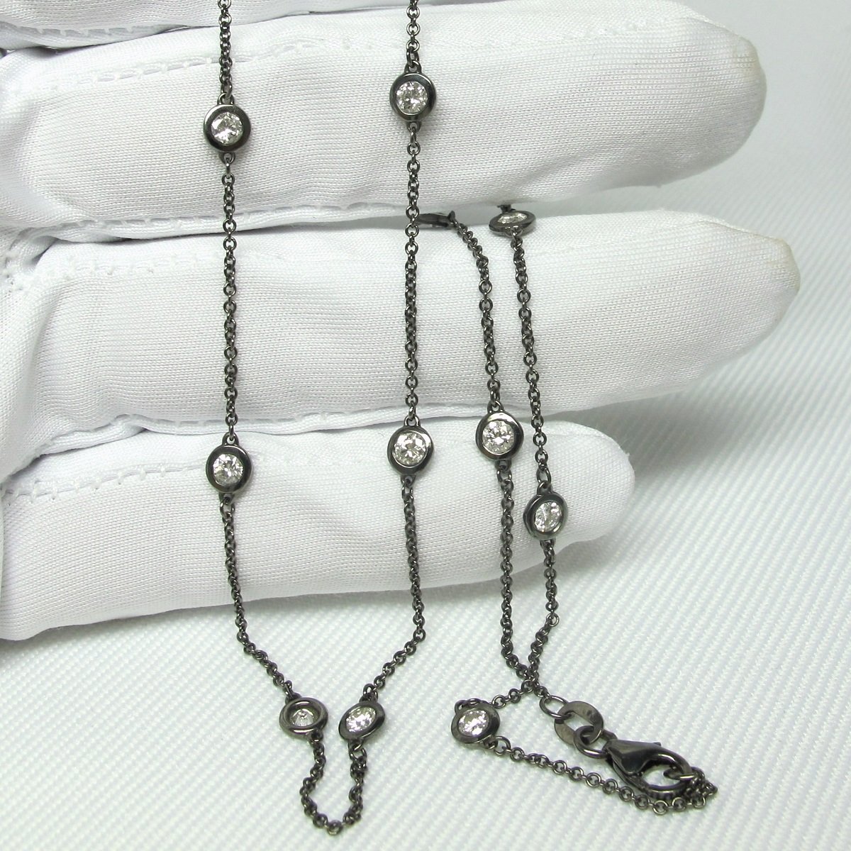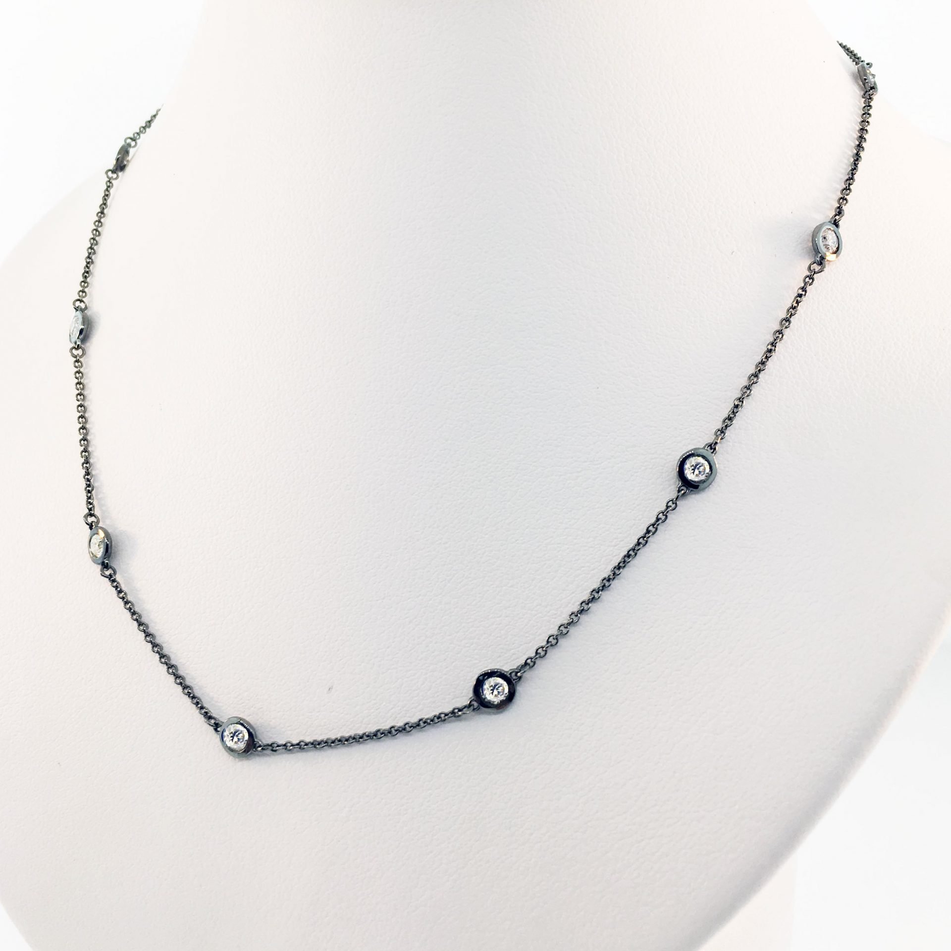 Tags 14k White, Bezel Set, Black, Black Rhodium, Bold, Cable Chain, Diamond, Diamonds on a chain, Diamonds On Chain, Fancy, Necklace, Stones on Chain, Unique
