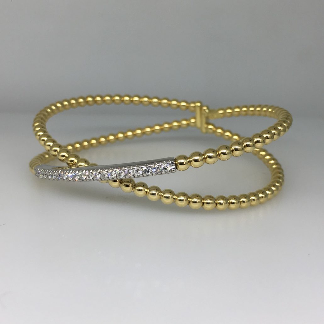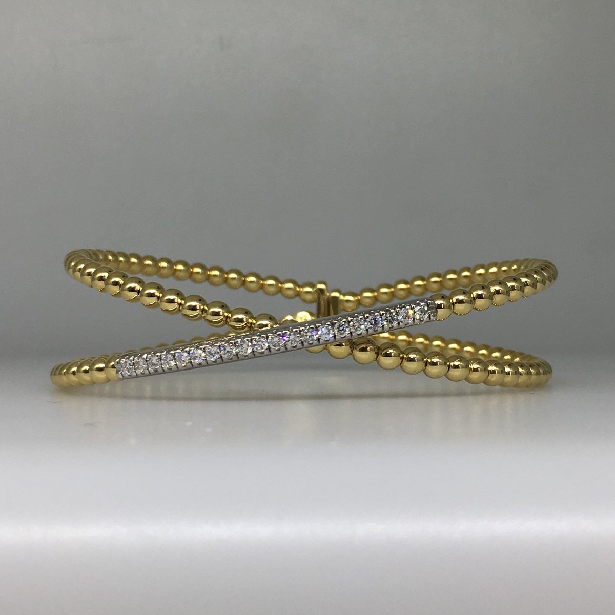 Tags 18k White, 18k Yellow, Bangle, Bar, Beaded, Bracelet, Criss-Cross, cuff, Diamond, Fancy, Flexible, Four Prongs, Opens, X Shape