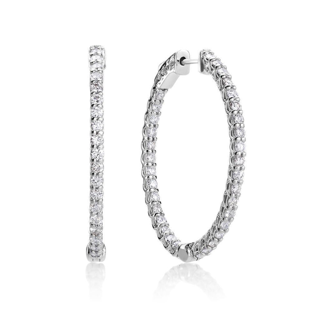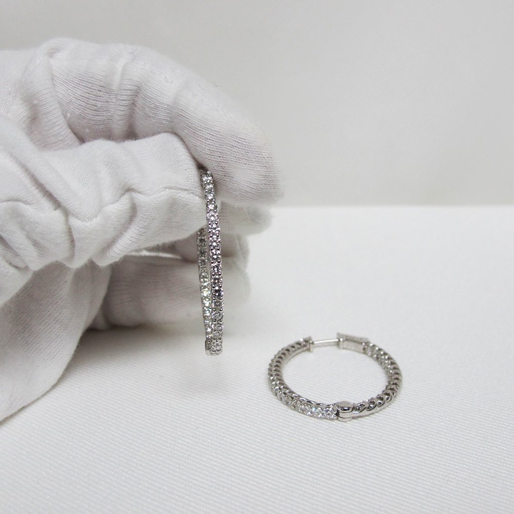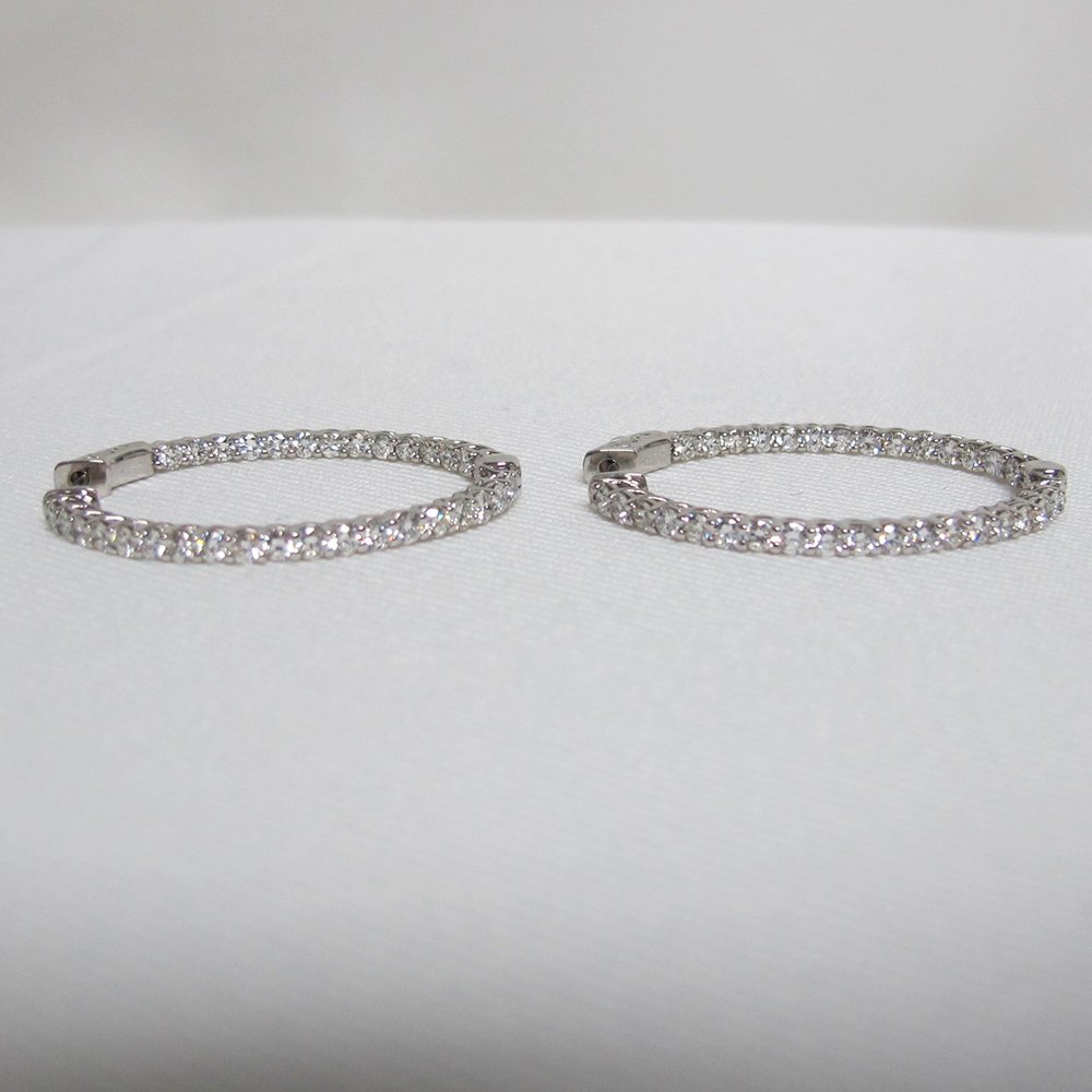 Tags 14K White Gold Diamond Hoop Earrings, Diamond Hoop Earrings, Diamond Hoops, Inside Out Design, Patented Core Lock