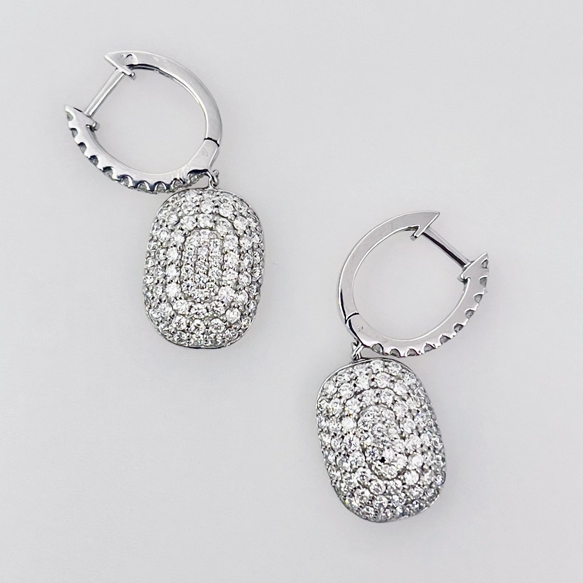 Tags 14k White Gold, Diamond Earrings, Diamond Oval Dangles