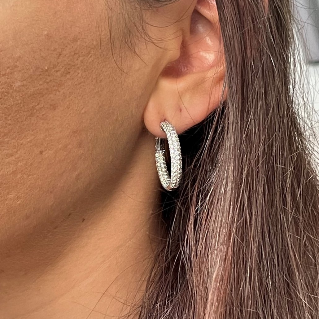 Classic Diamond Hoops – Inside Out Design with a patented core lock to ensure security!