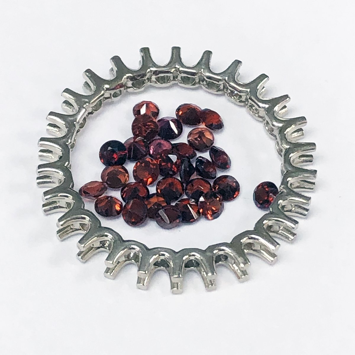 26 Round Garnets, each set in a shared prong 14K White Gold mounting.