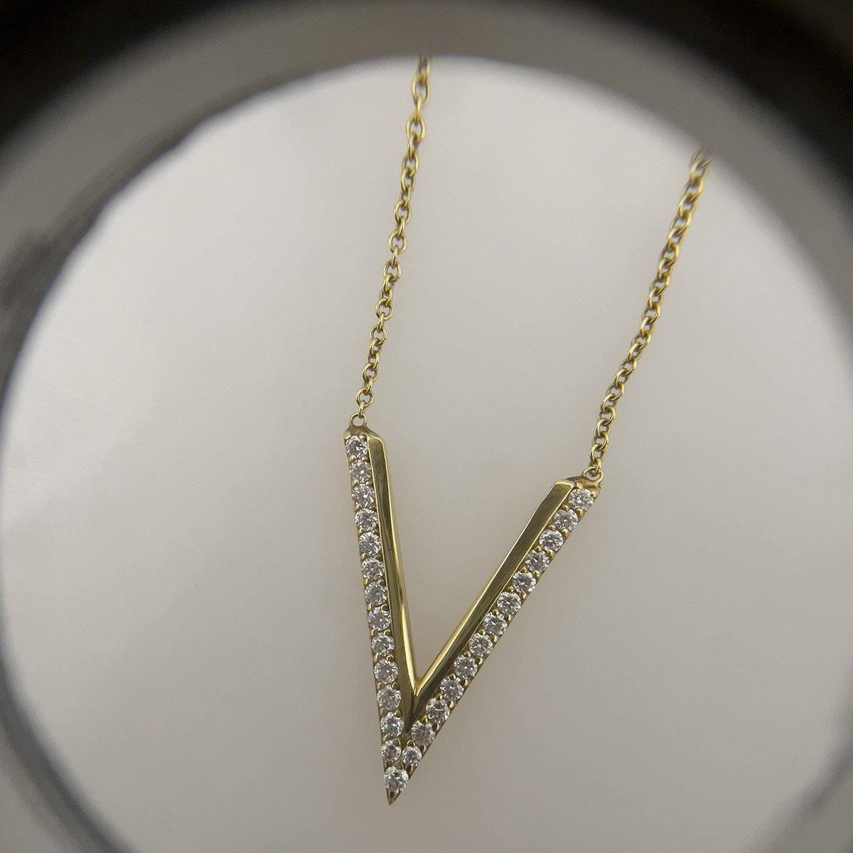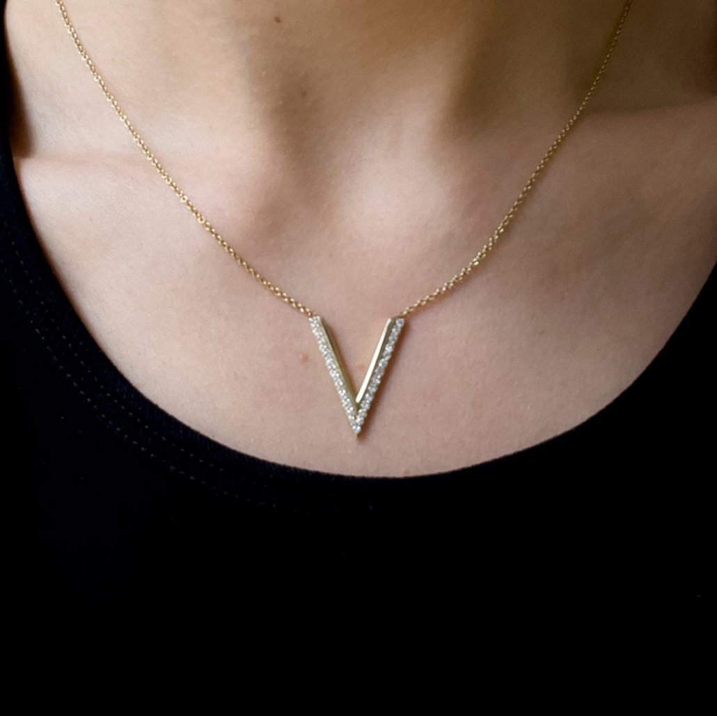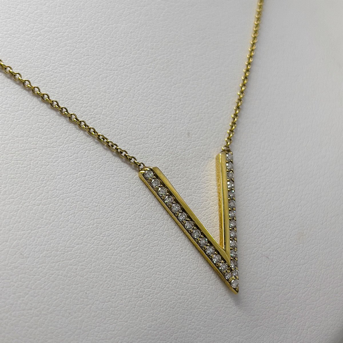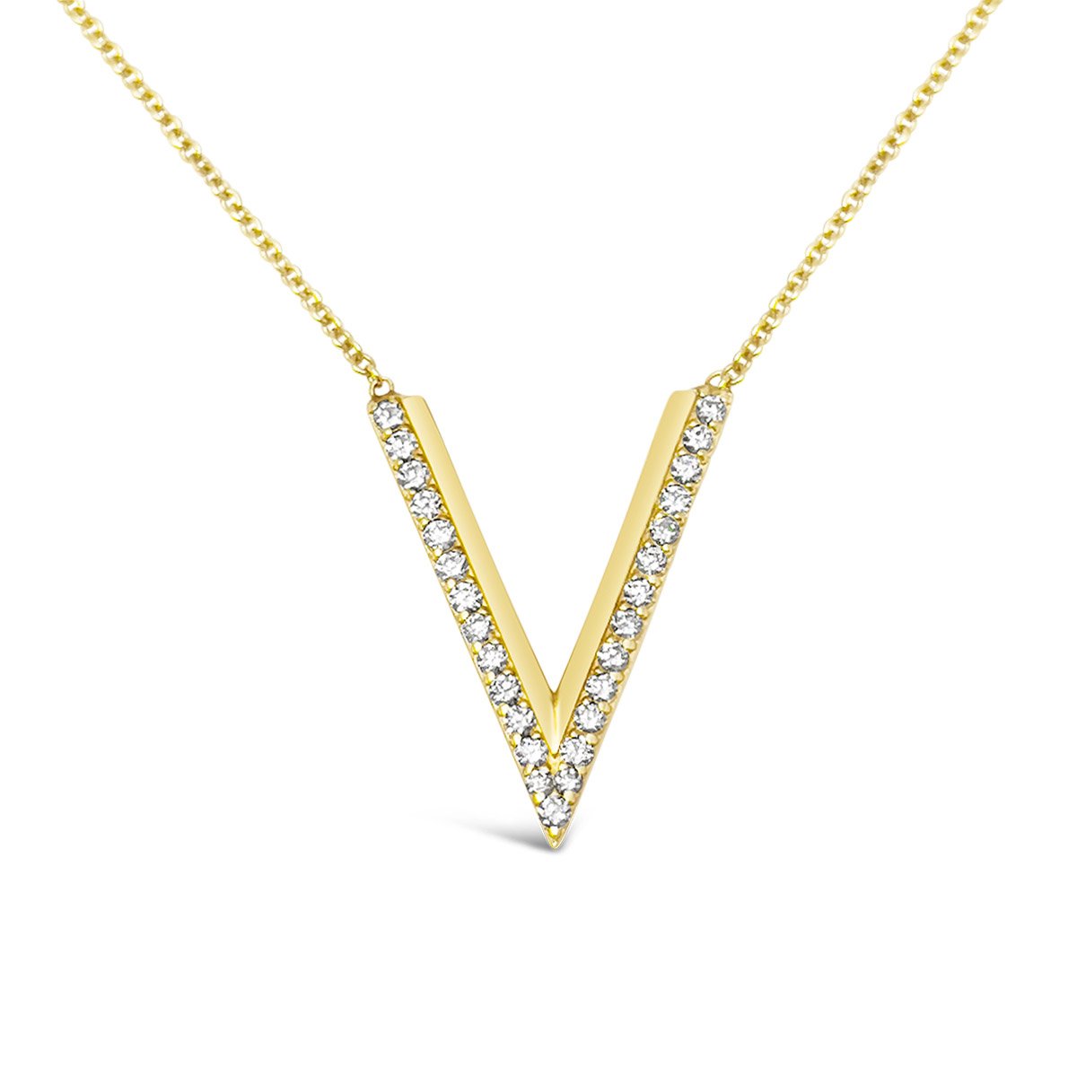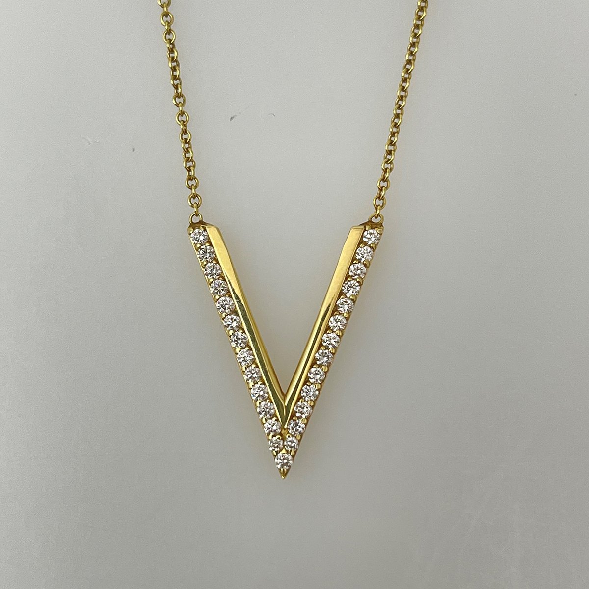 Yellow gold and diamonds are ready to go in a V-Neck contemporary necklace.