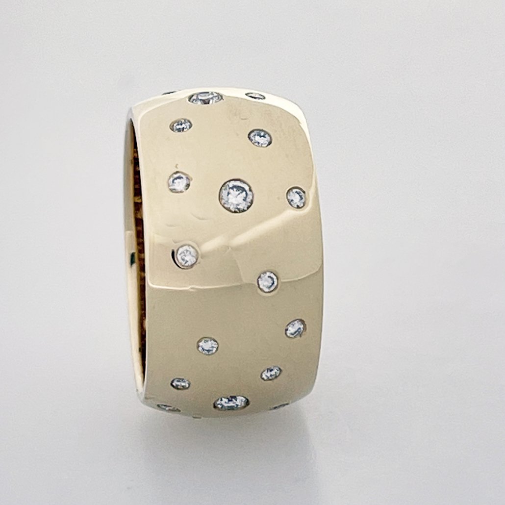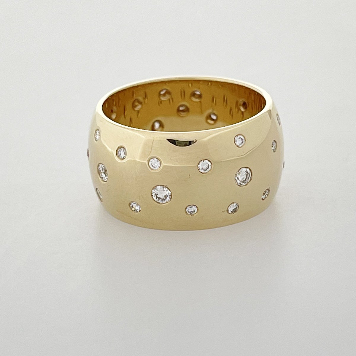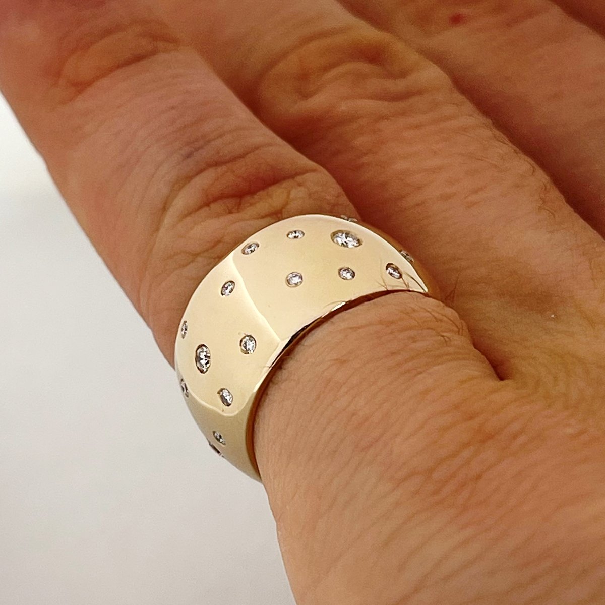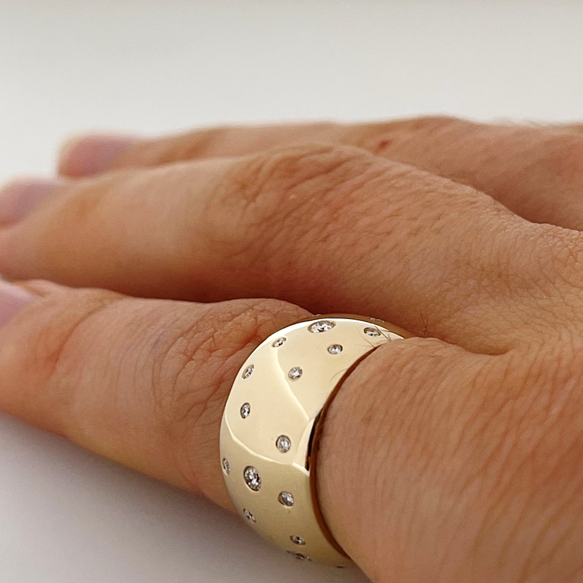 Tags diamond dust, diamond dusted ring, diamonds and yellow gold, shiny burnished band, thick band