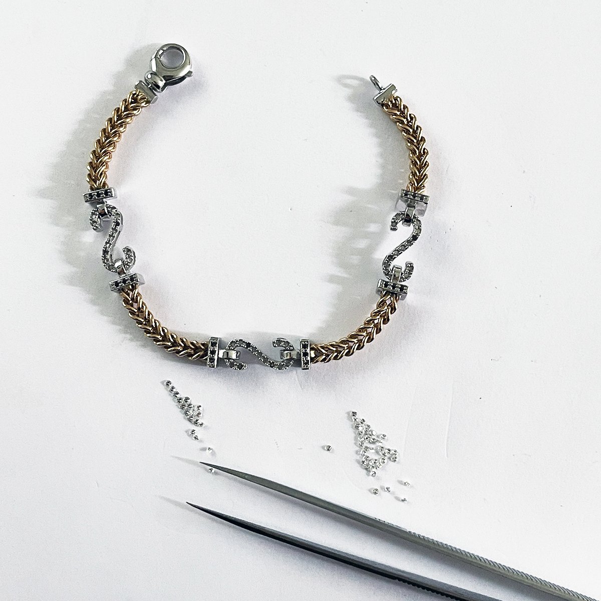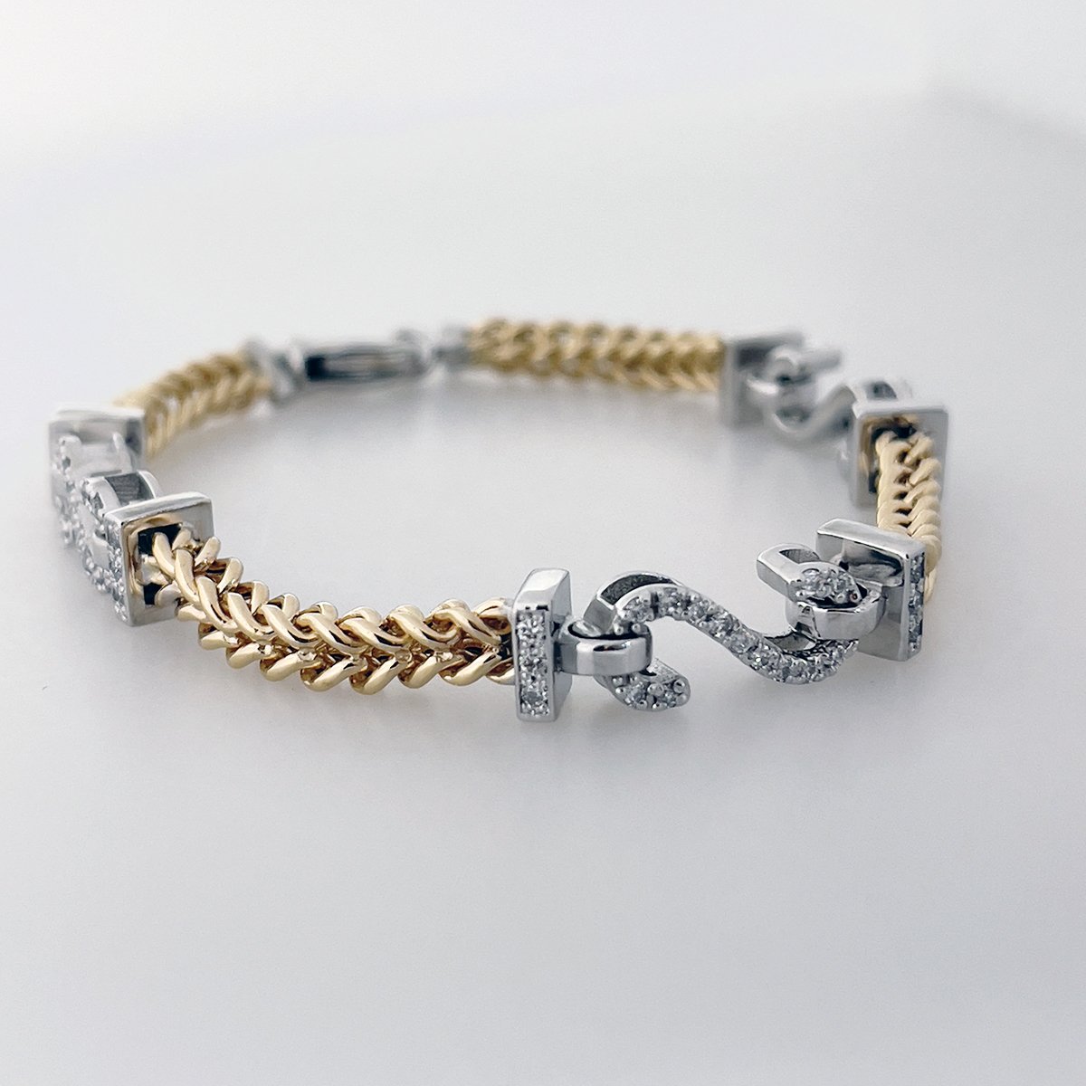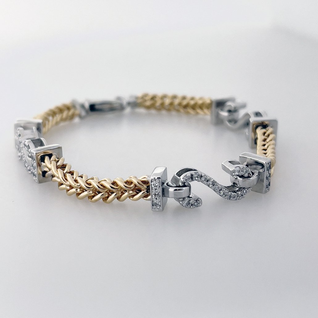 Categories 14K Two-Tone, 14K Yellow, Bracelets, Custom Design, Diamond Bracelets, Diamonds, Fine Jewelry, Link Bracelets, Master Bracelet, Master Stone, Metal Type, Two-Tone