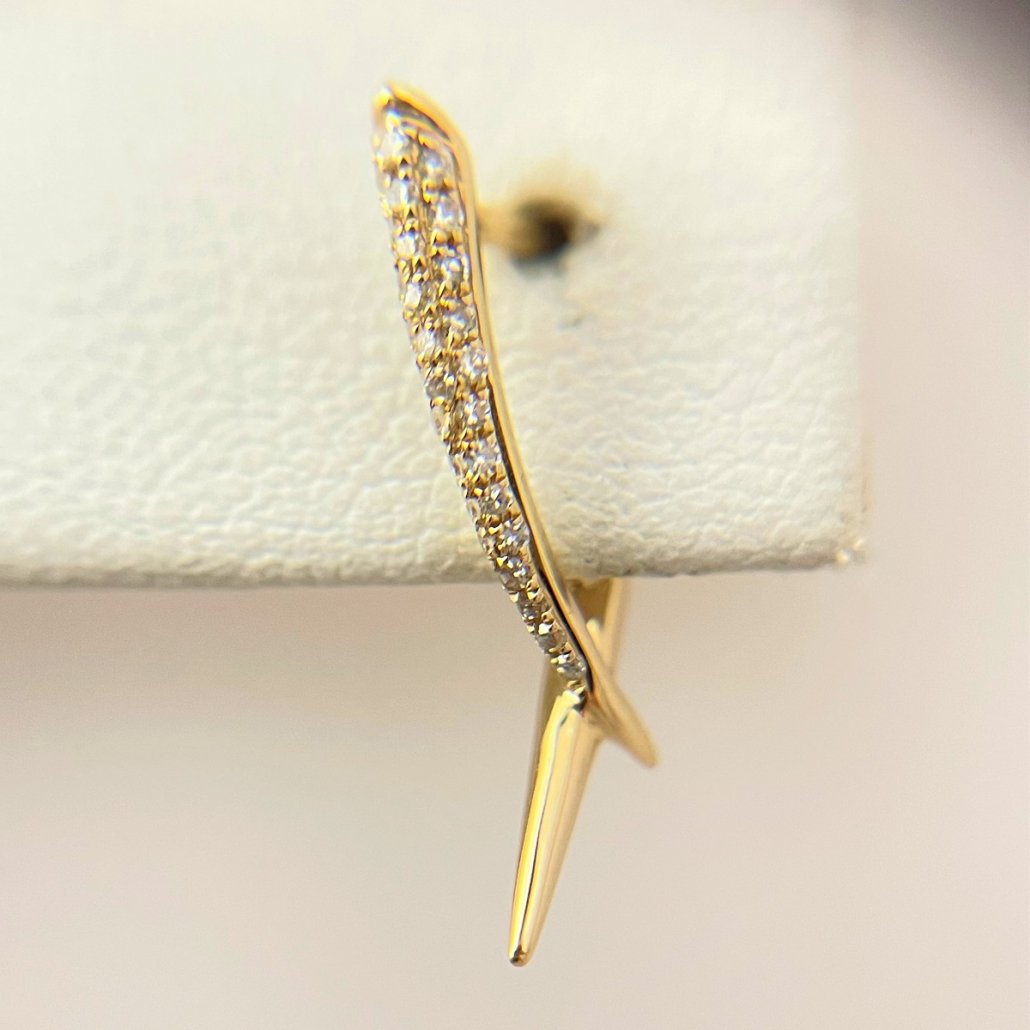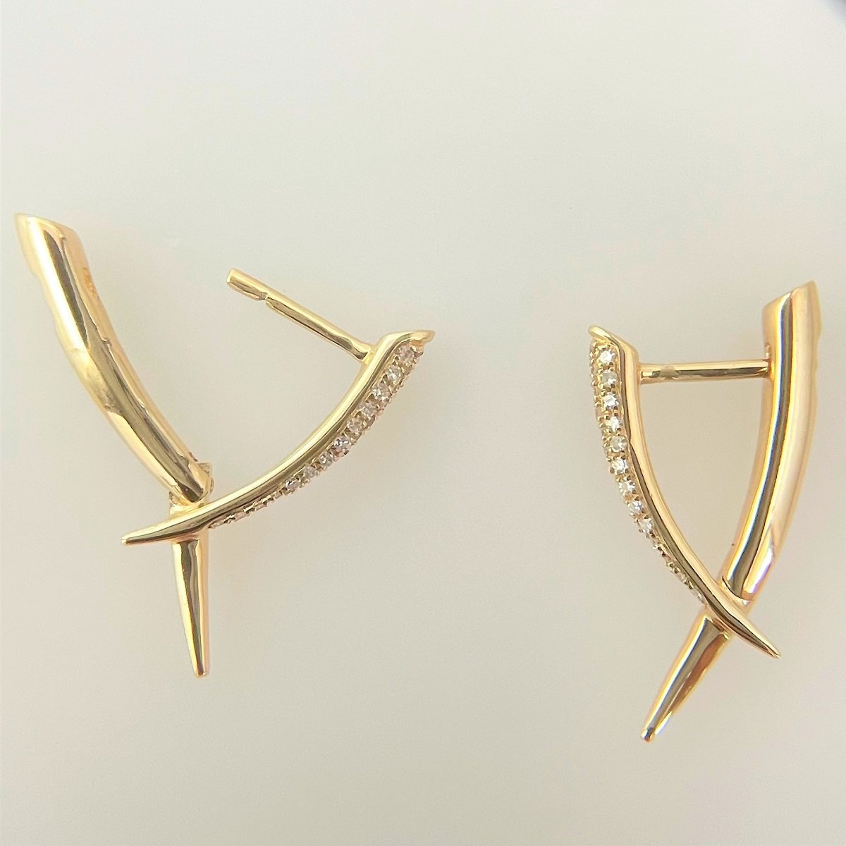 Yellow gold cross bars are encrusted with diamonds in these sleek, sexy earrings.