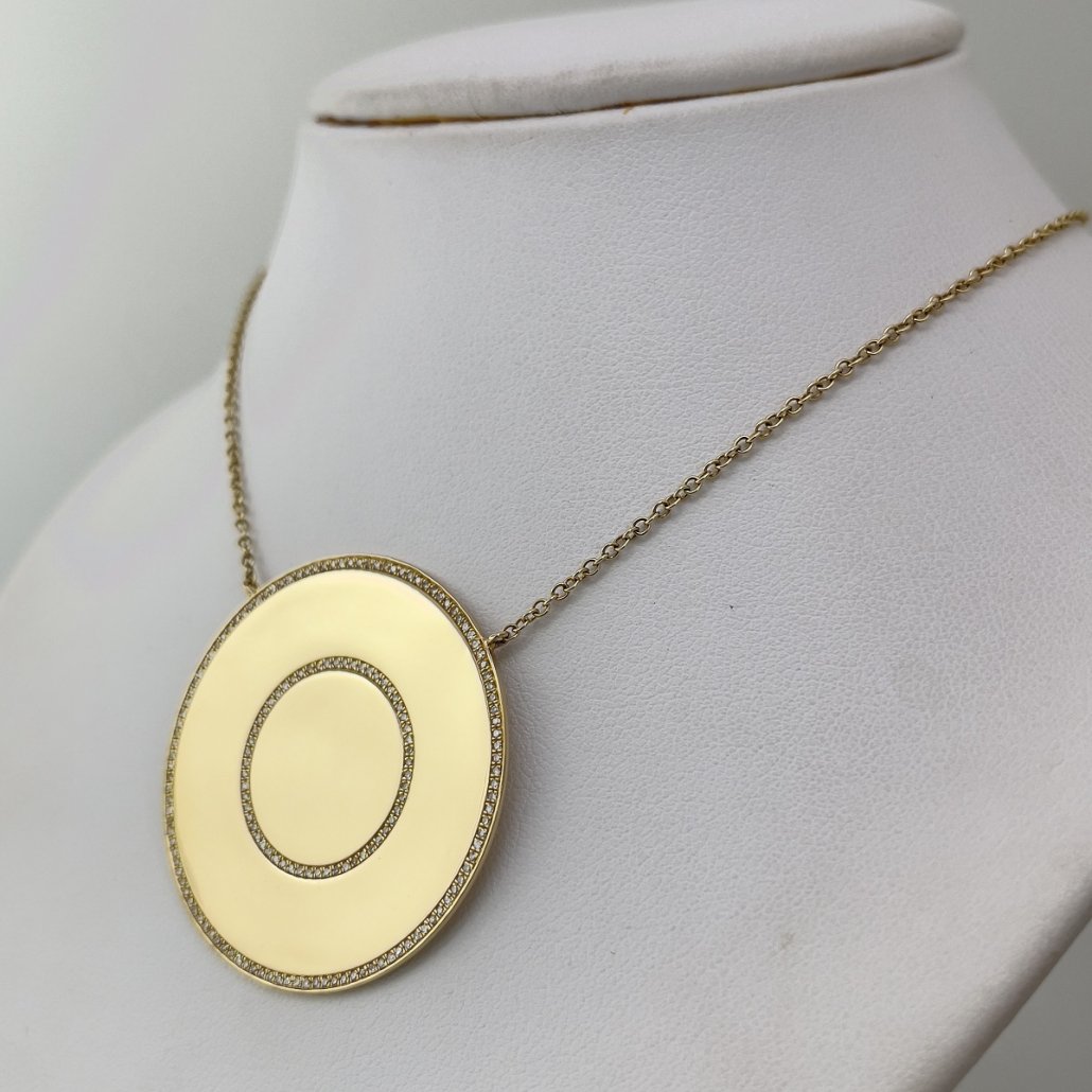 Tags 14K Yellow Gold, Abstract, Contemporary, Diamond Pendant, Disc Pendant