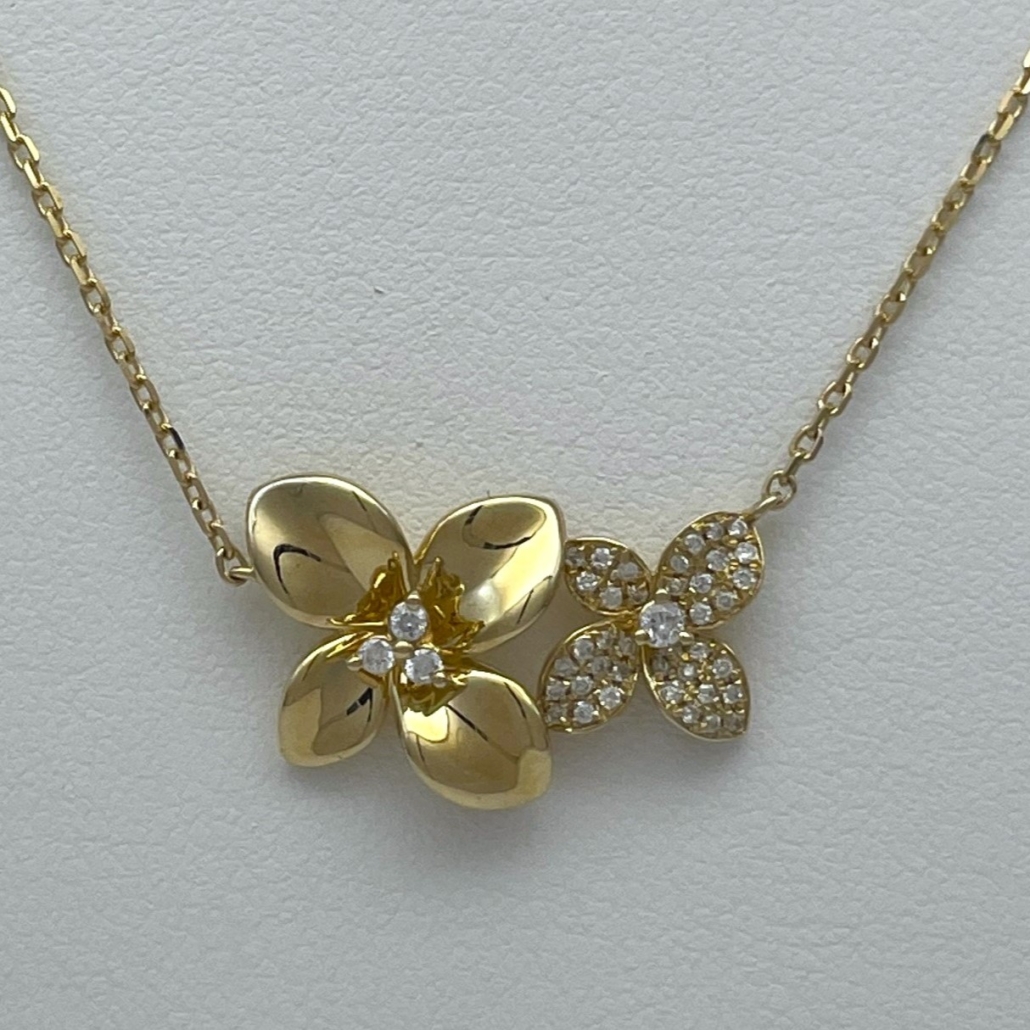 Tags 14k Yellow, Cluster, Diamond, Diamond Cut Cable, Fancy, Floral, Flower, Necklace, Pendant