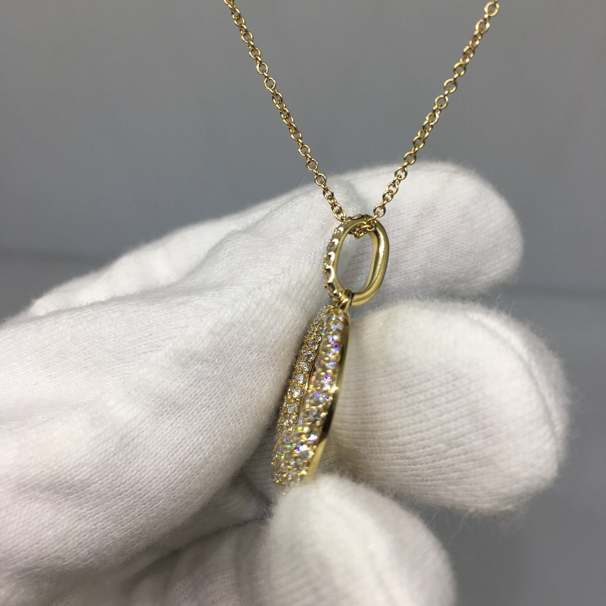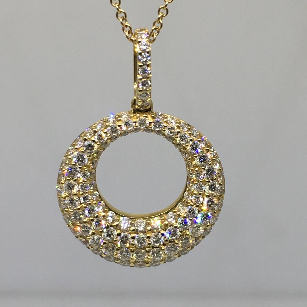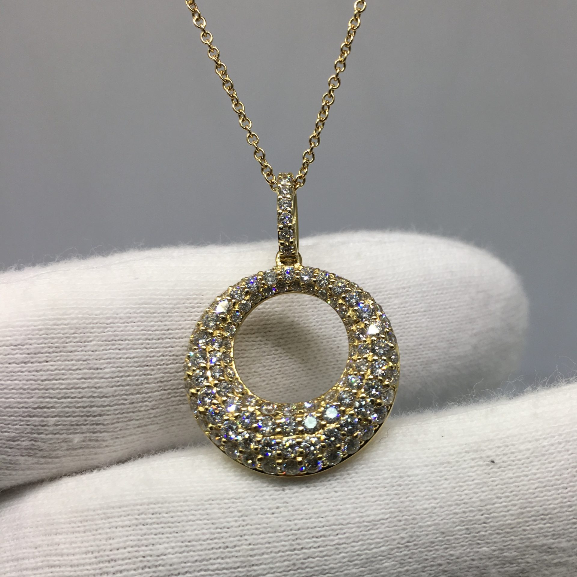 Tags 14k Yellow, Bail, Circle, Cluster, Crescent, Diamond, Necklace, Pave Set, Pendant, Shared Prongs