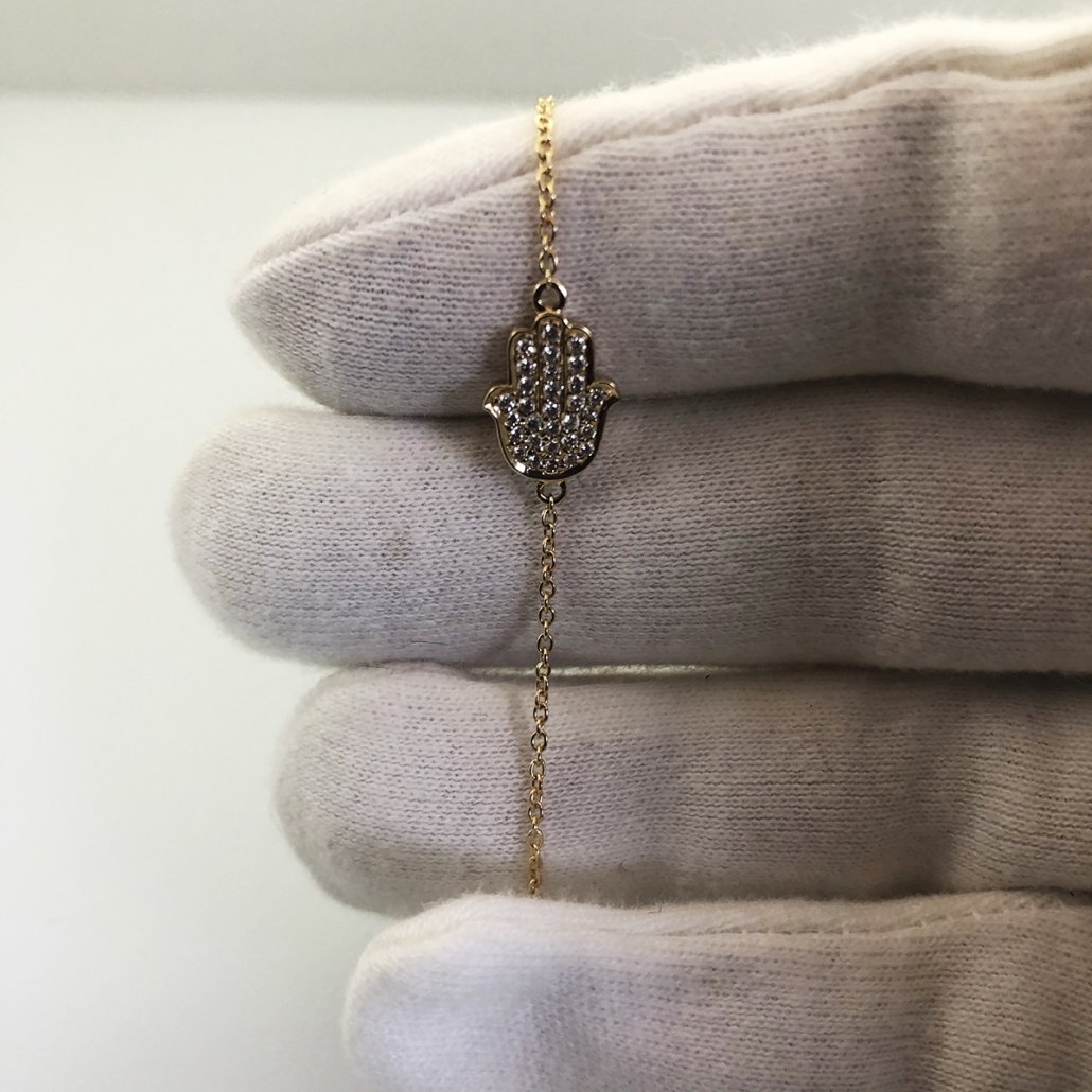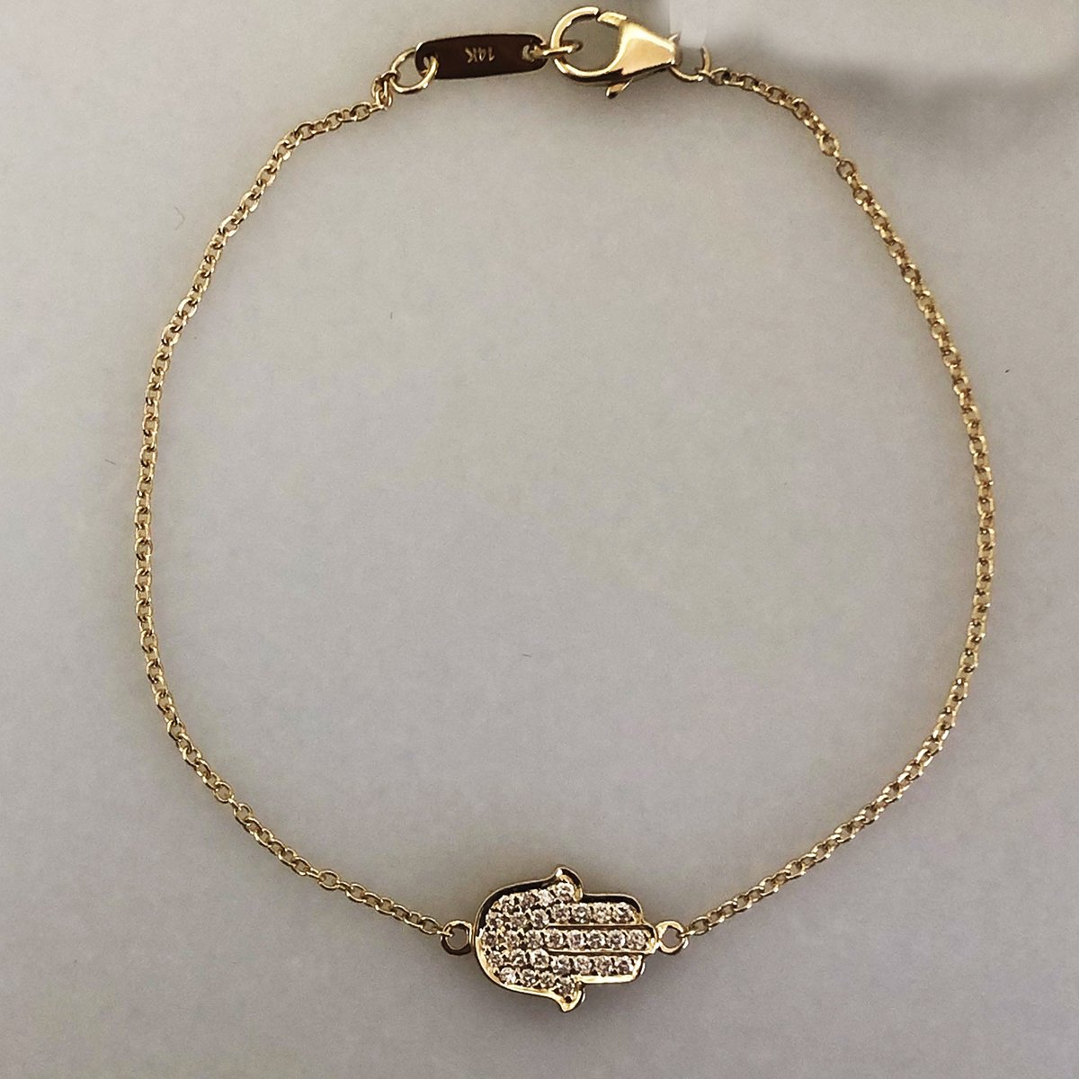 Tags 14K Yellow Gold and Diamond Bracelet, 2020 Gifts, 2020 holiday, Bracelet, Diamonds, Hamsa, Hamsa Protective Hand, Middle Eastern Amulet, Pave Set Diamonds, trending