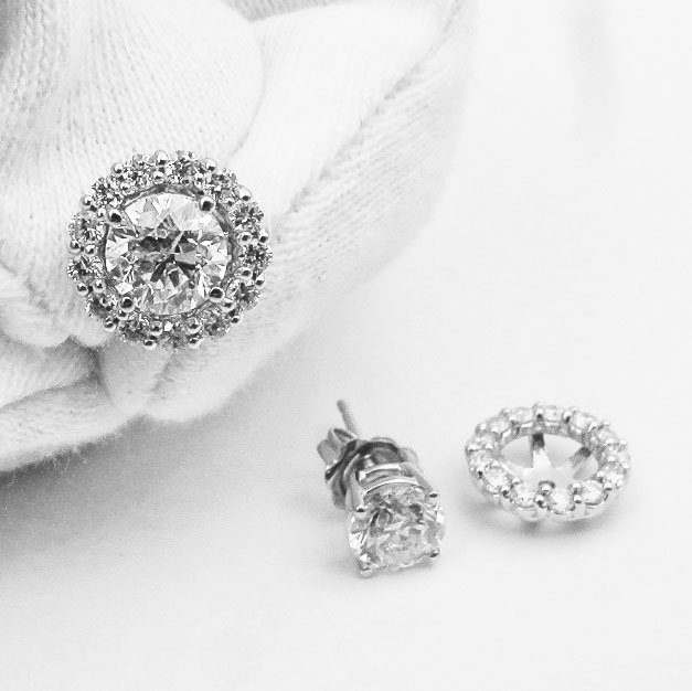 Categories 14K White, Cluster Earrings, Custom Design, Custom Earring Not Avail, Diamonds, Fancy, Gemstones, Master Earring, Master Stone, Metal Type