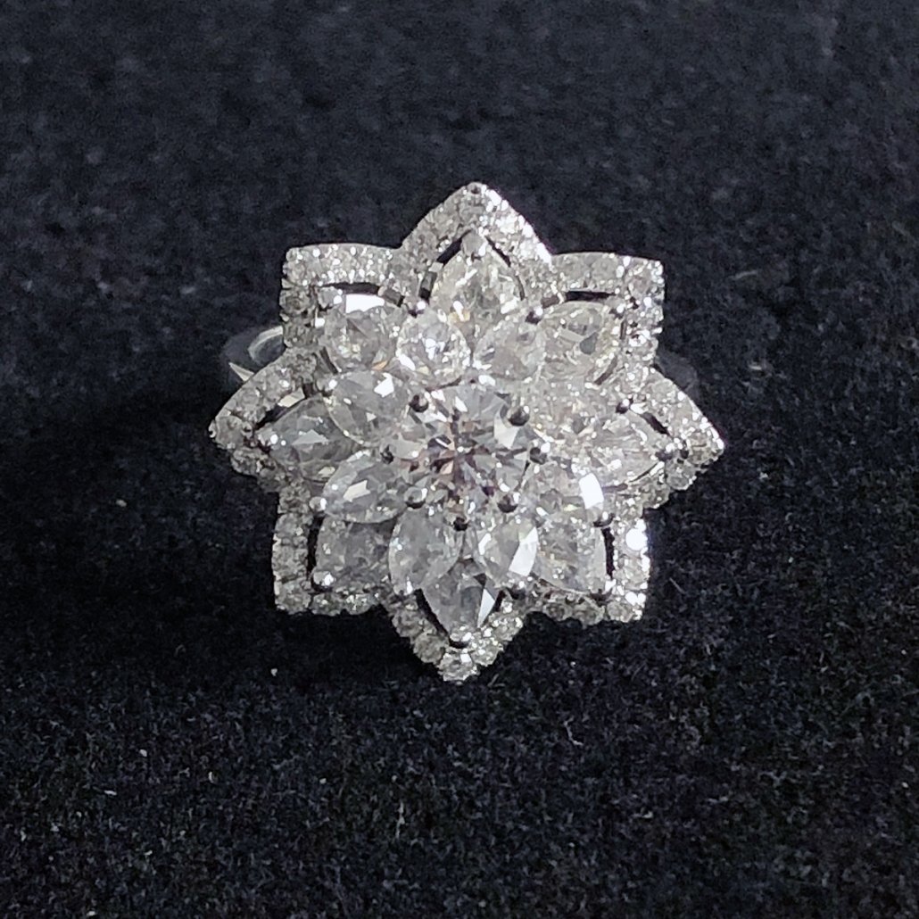 Tags 18K White Gold, Diamond Lotus Flower, diamond ring, Fancy Diamond Ring