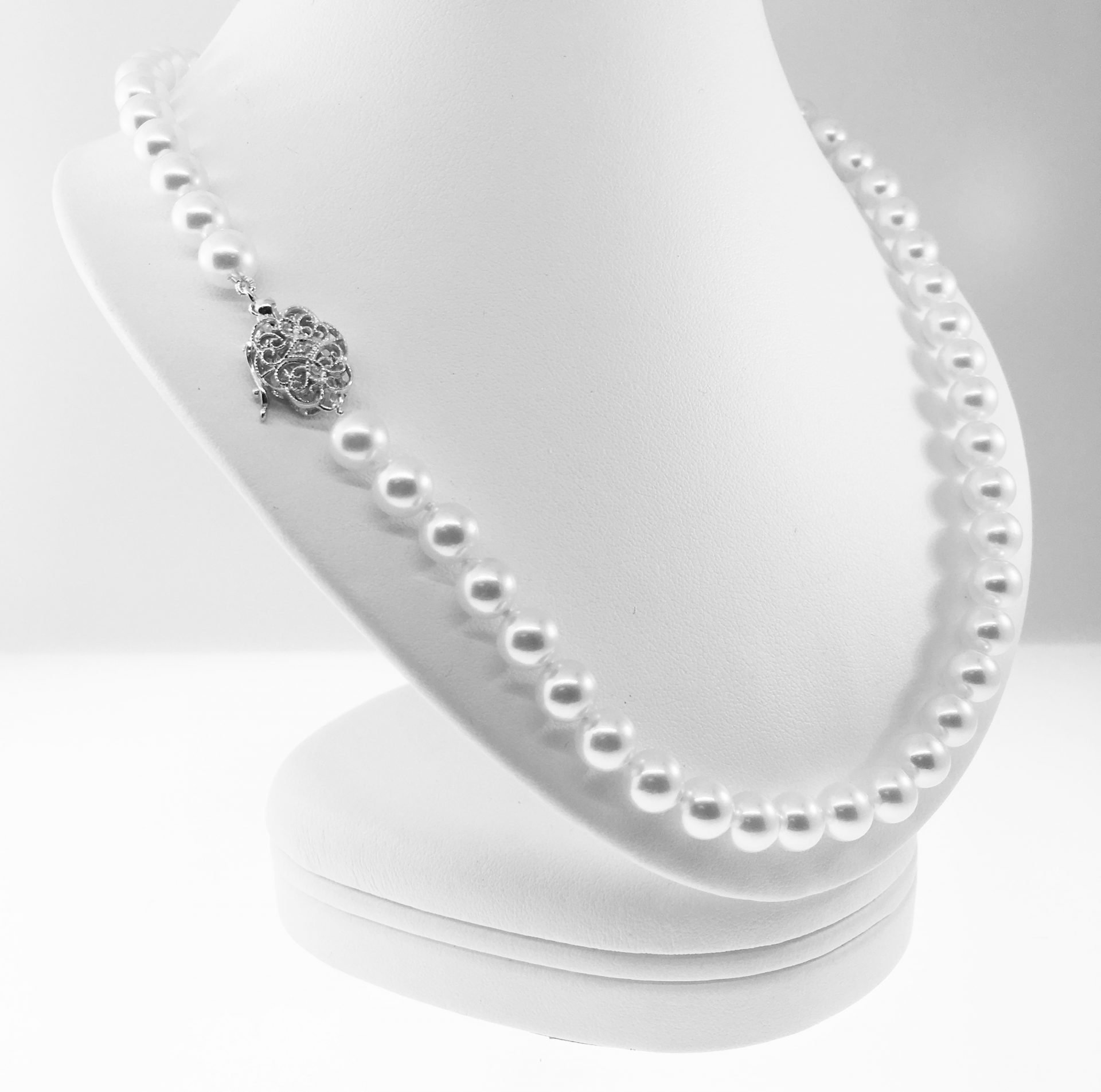 Tags Akoya, Beads, Clasp, Classic, Elegant, Figure 8 Safety, Filigree Clasp, Floral, gemstone, Hand Knotted, Milgrain, Necklace, Ocean, Pearl, Sea, Silk Strung, Silver, Tongue in Bx Clasp, Traditional, Vintage Clasp