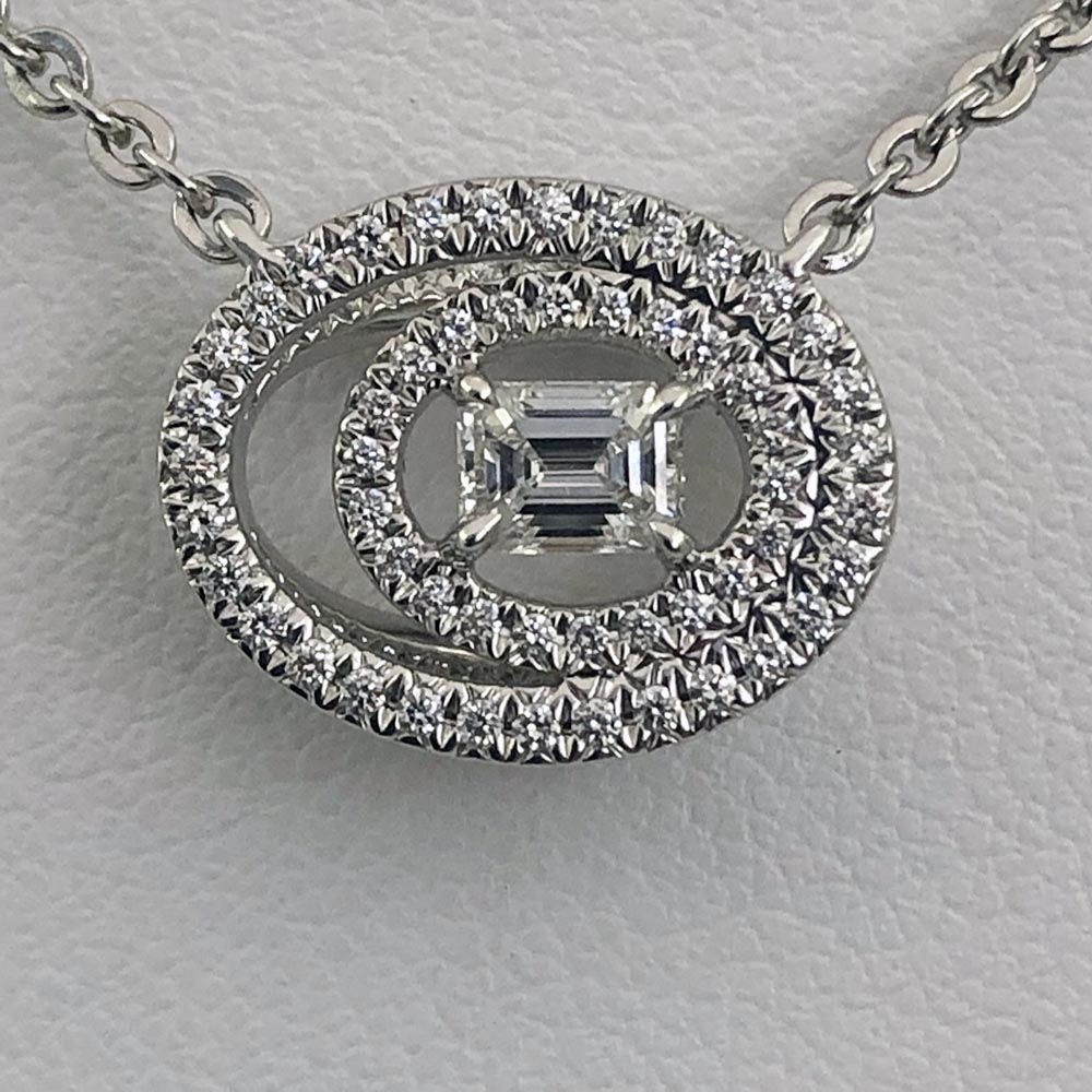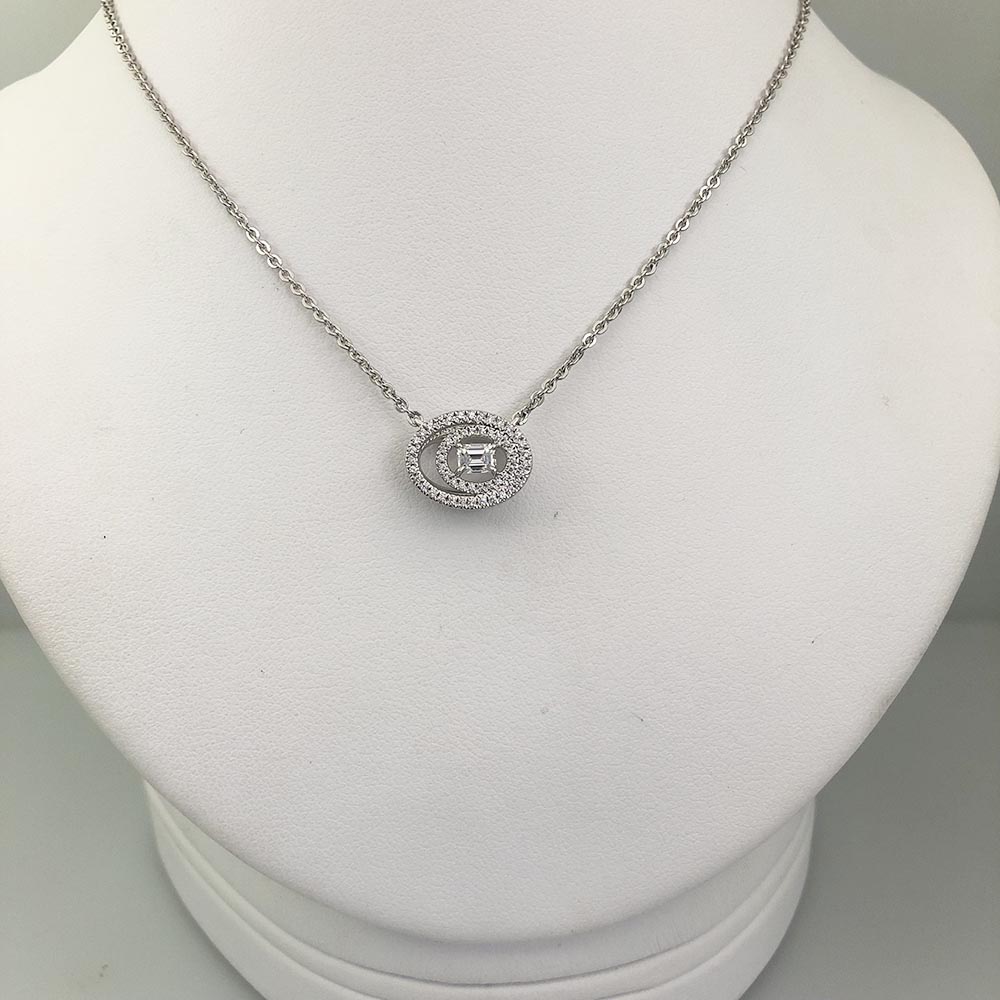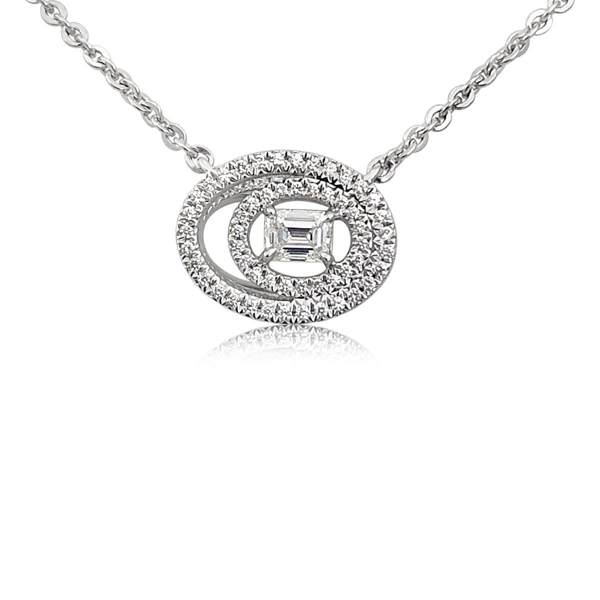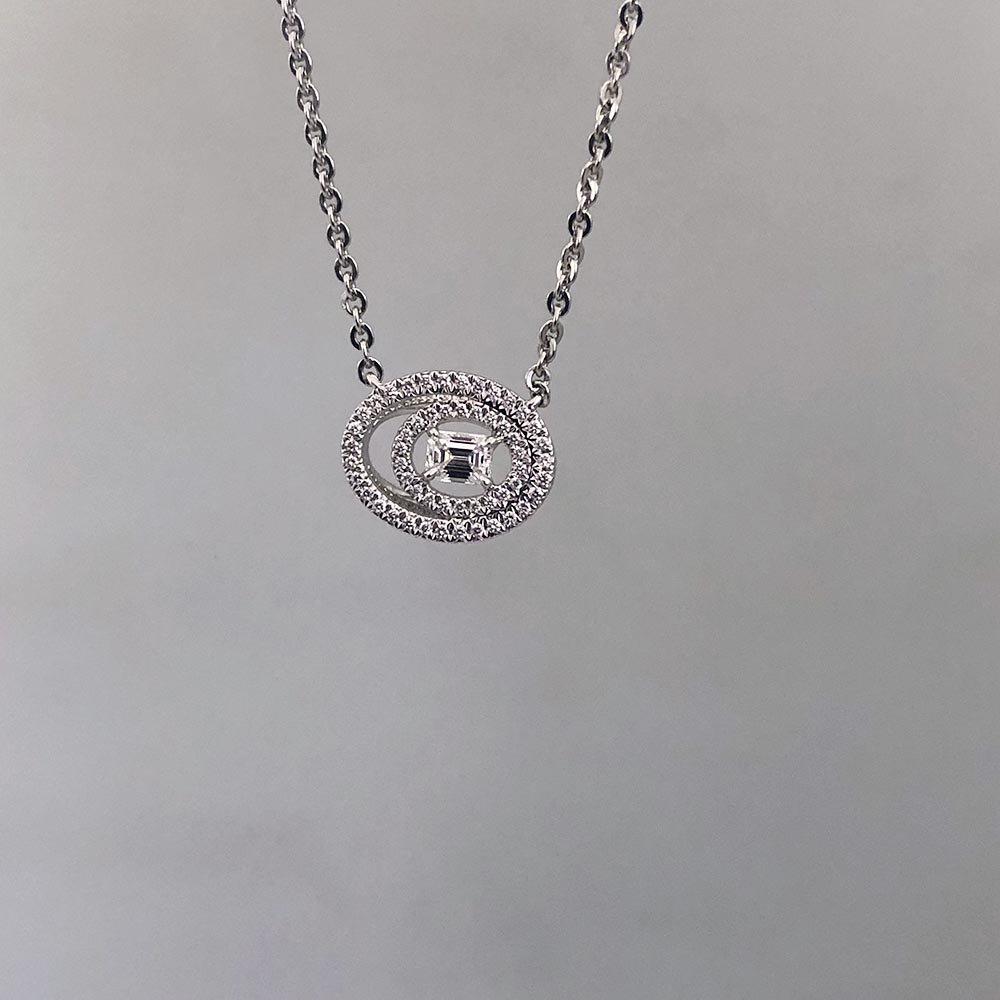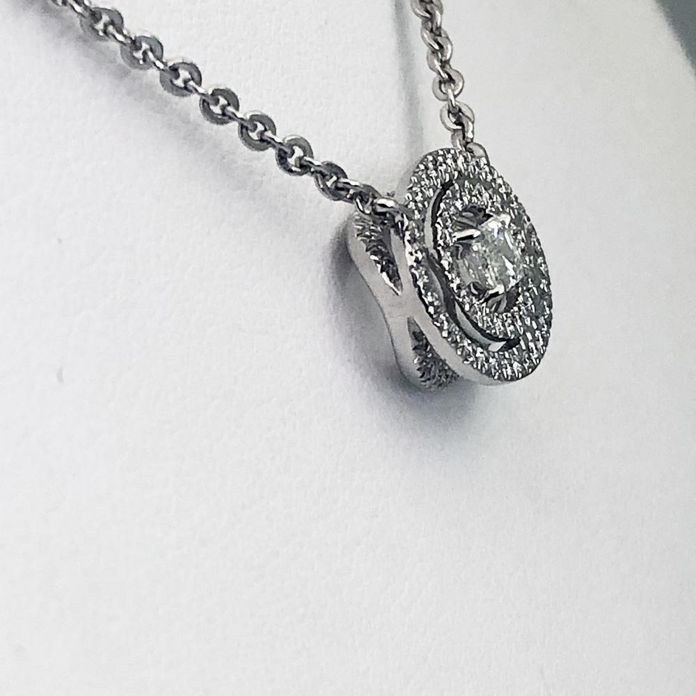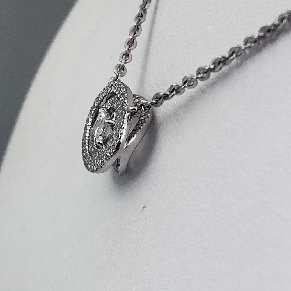 Diamonds encircling diamonds. Think of this 18K White Gold Necklace as a circle of heavenly stars around the moon.