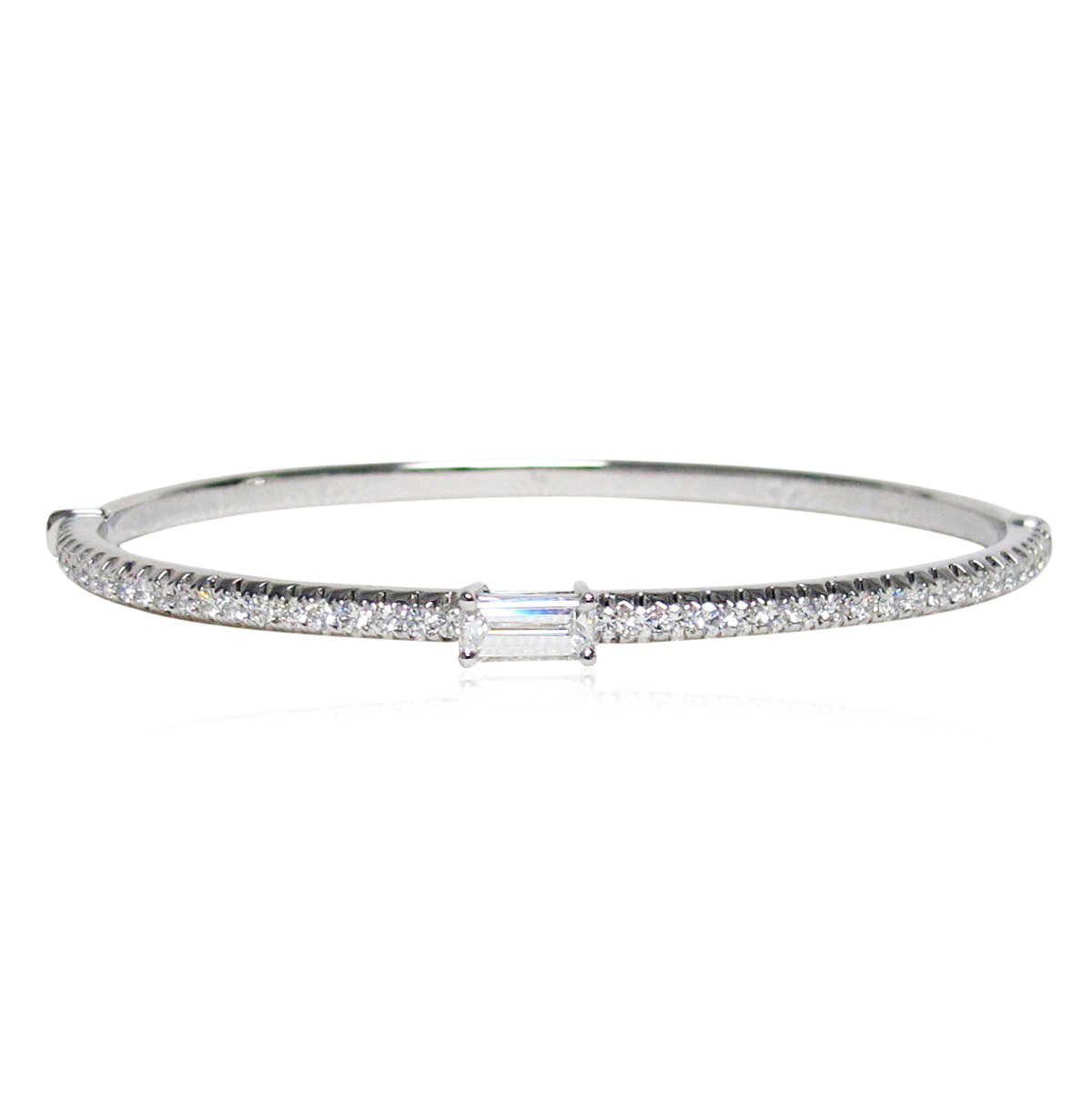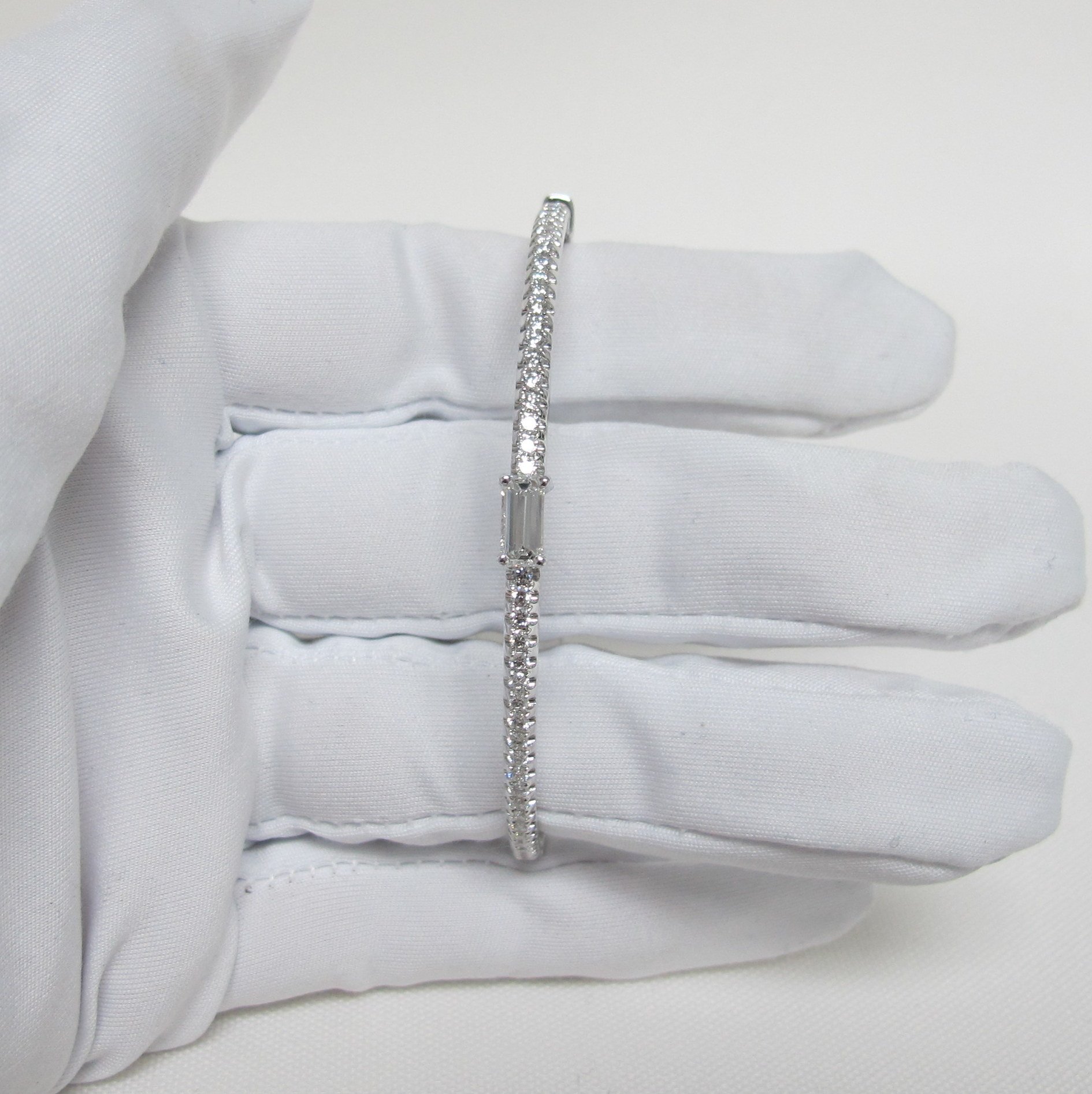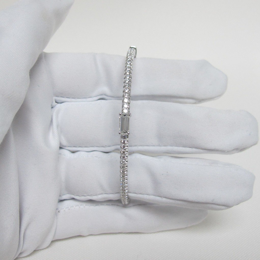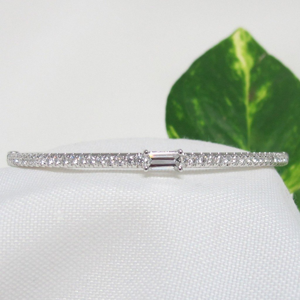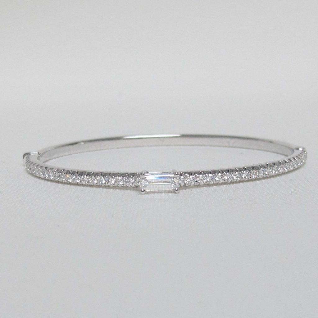 Tags Custom Bangle Bracelet, Diamon Bracelet, Diamond Bangle, Emerald Cut Diamond Feature, White Gold Bracelet with Diamonds
