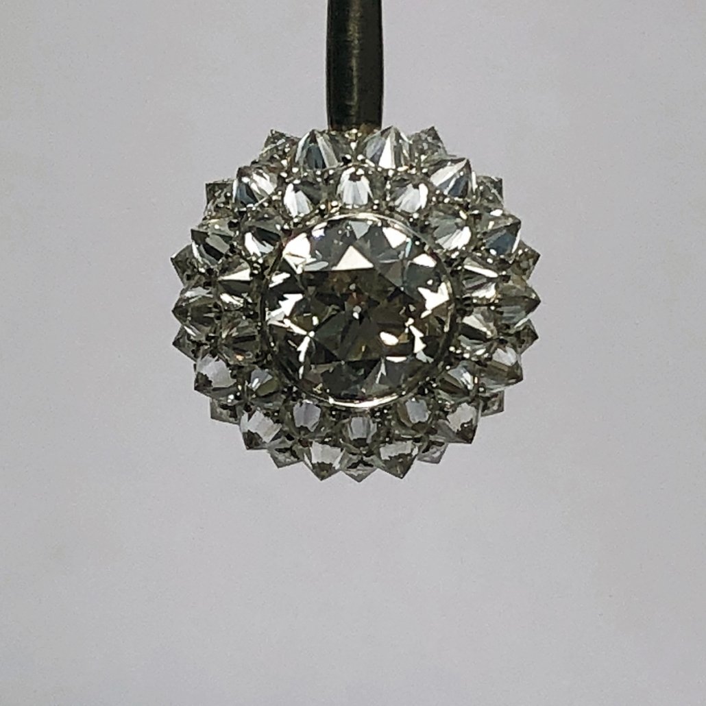 | SETTING | Bezel Set Centerstones Surrounded By Culet Up Diamonds Mounted on a Stem |