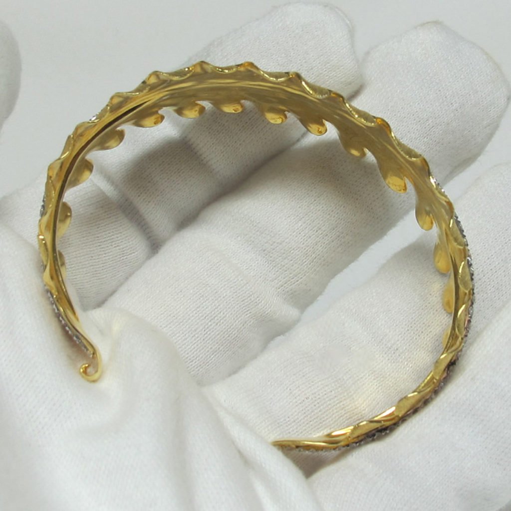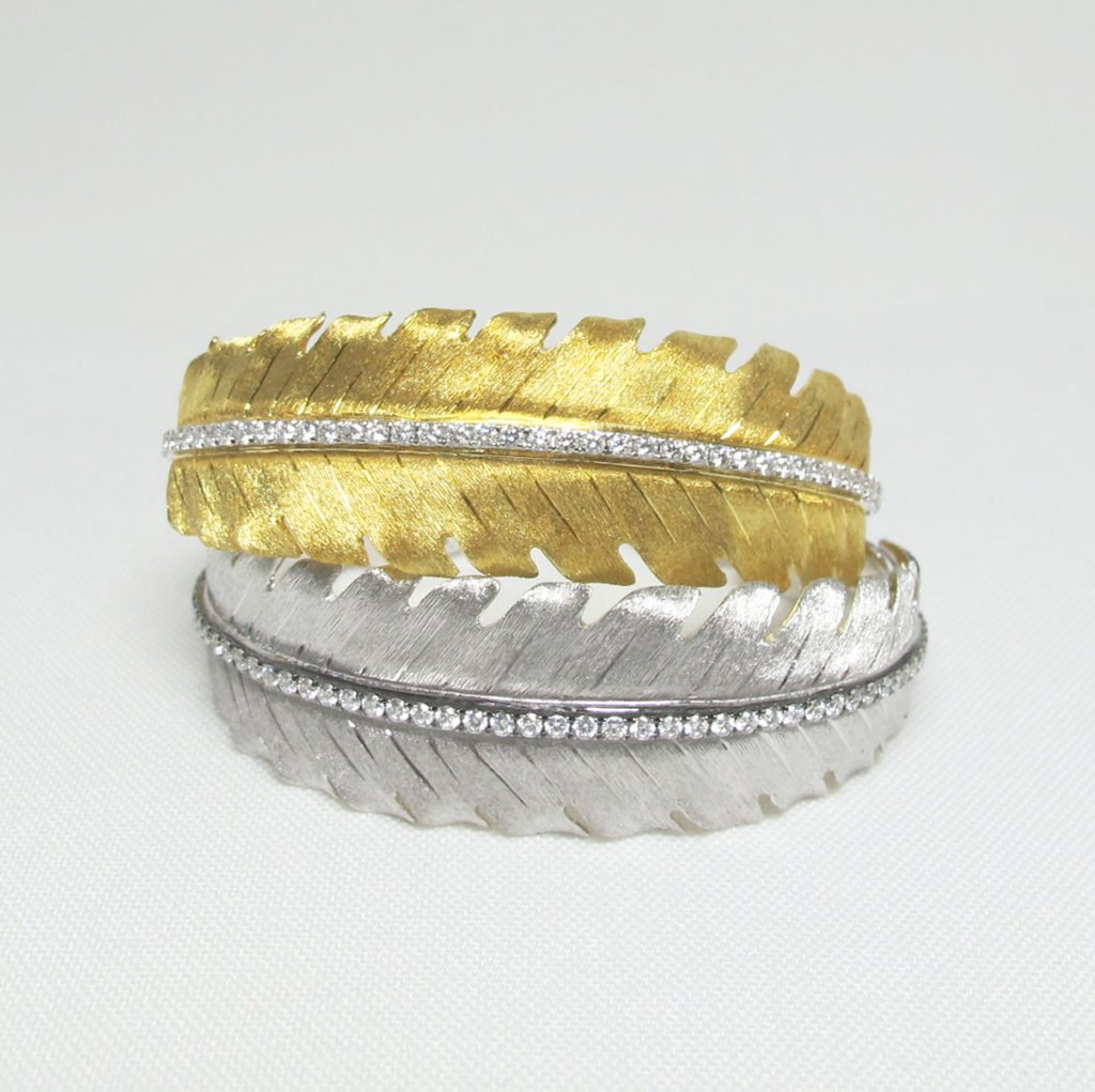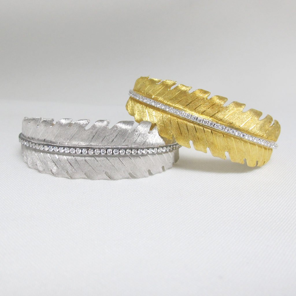 Tags Bangle, Bracelet, Custom Bracelet, Custom Leaf Bangle, Diamond Accent Line, Diamonds, Leaf, Leaves, White Gold Also Avaialble