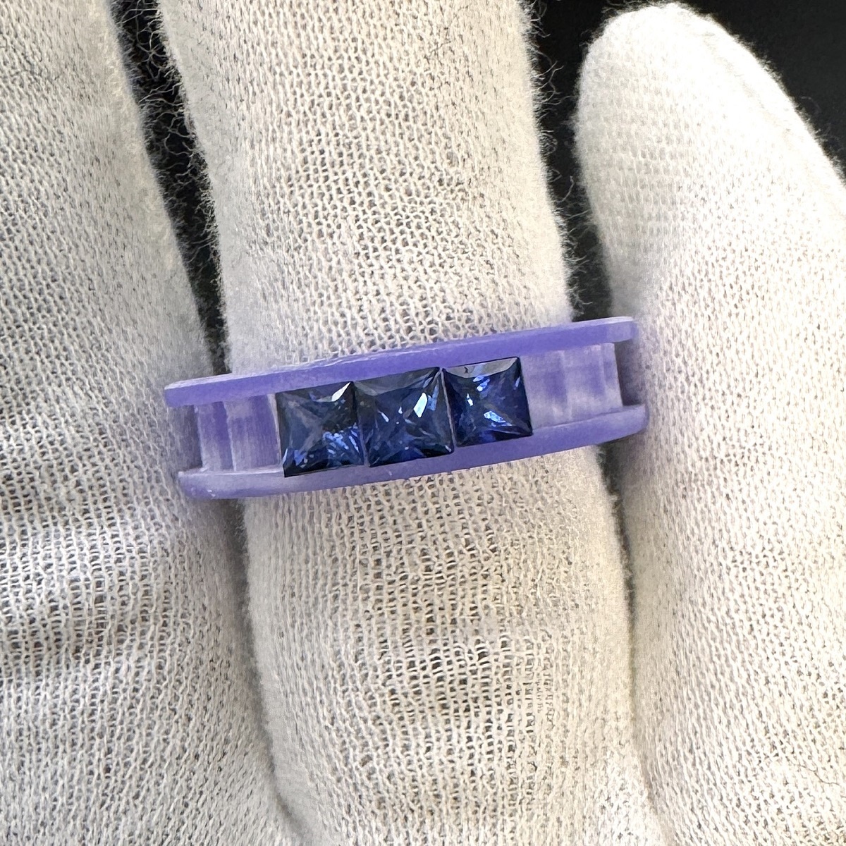 This gentlemen ring is made with 18k yellow gold and natural square cut sapphires, in channel set half away around the ring.