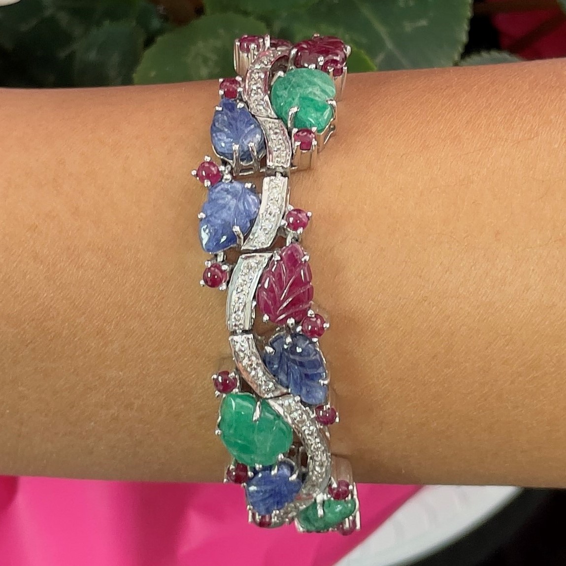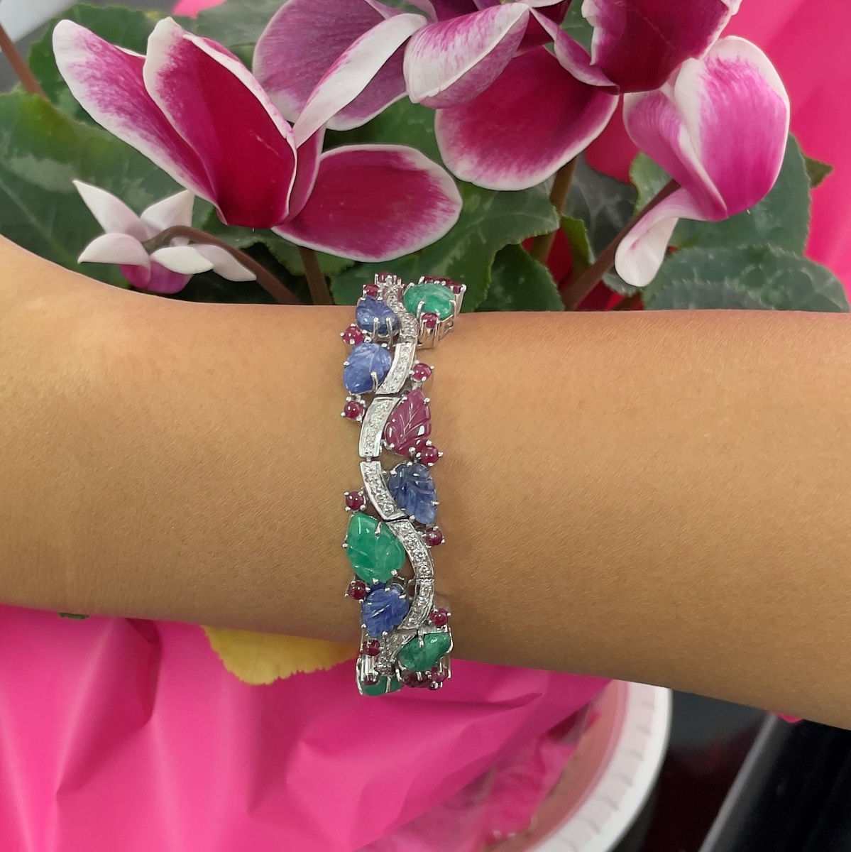 Authentic Tutie Fruitie Art Deco Bracelet containing colorful rubies, emeralds and sapphires. and accented with diamonds.