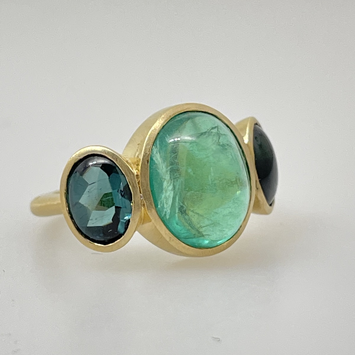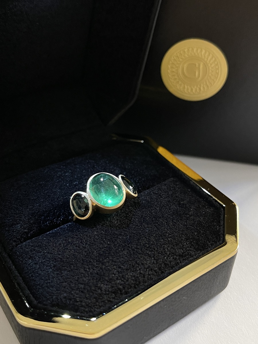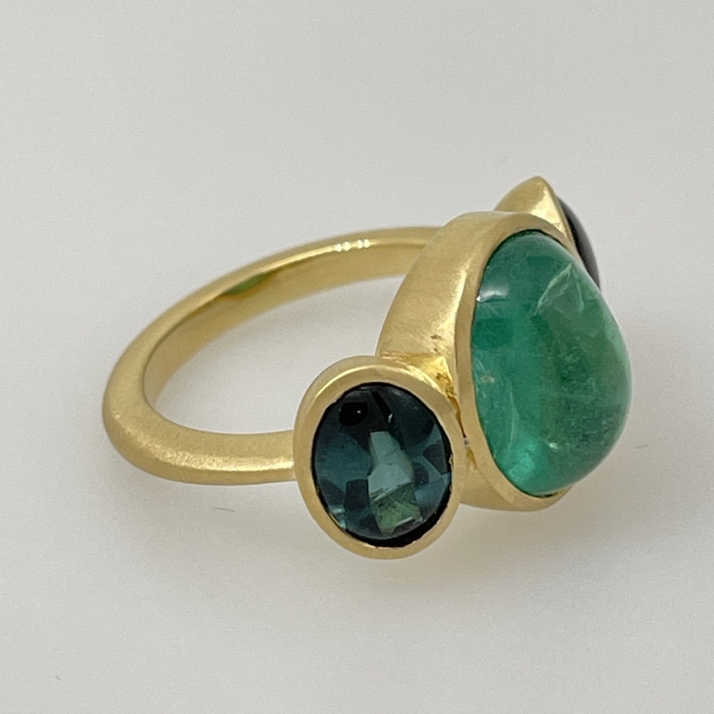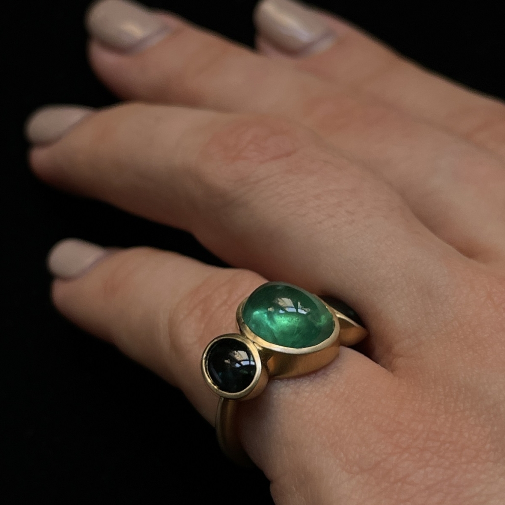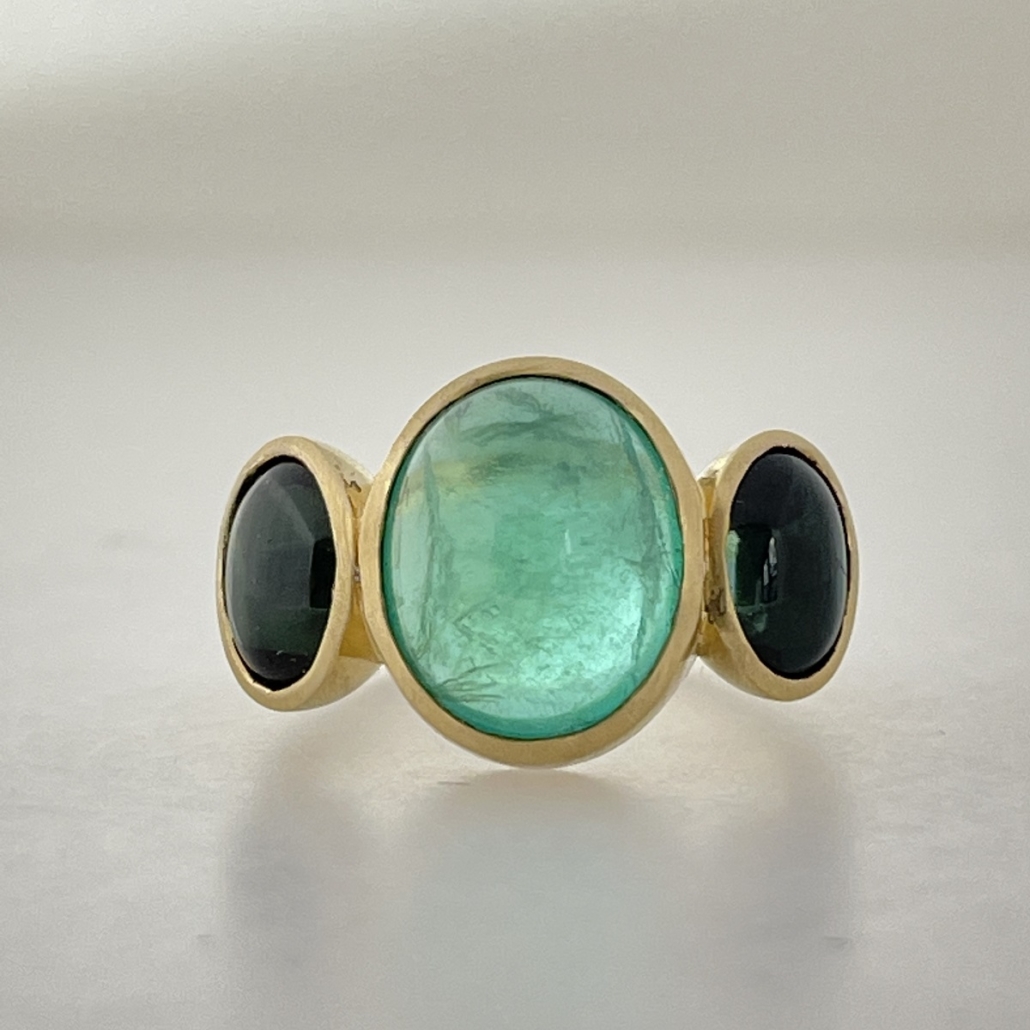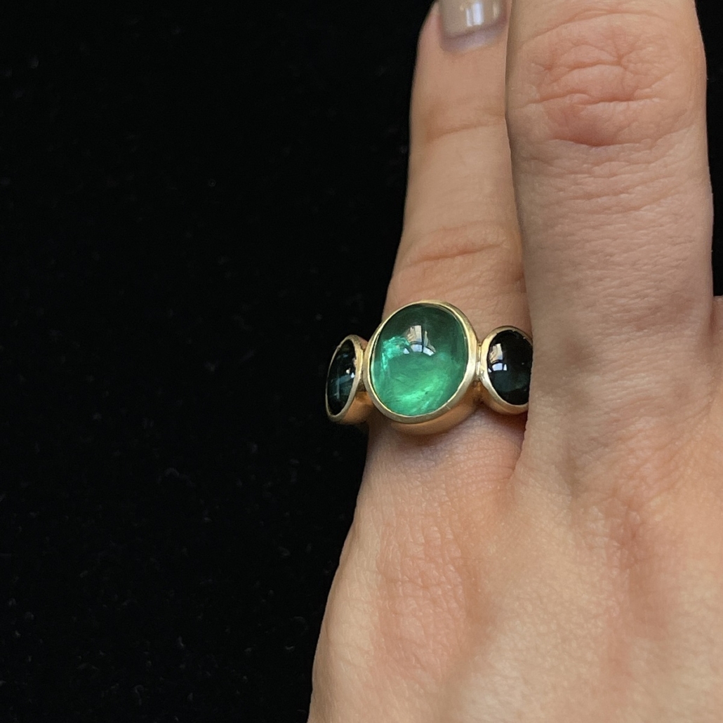 Cabochon Emerald and Tourmaline Evening Ring