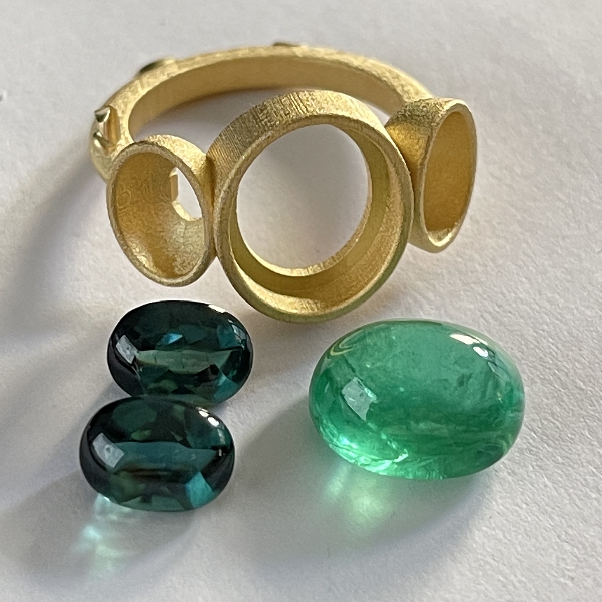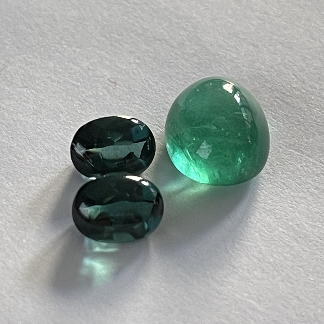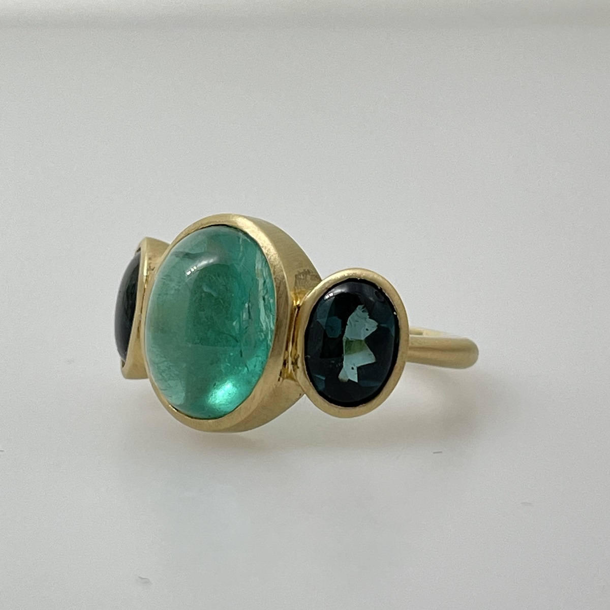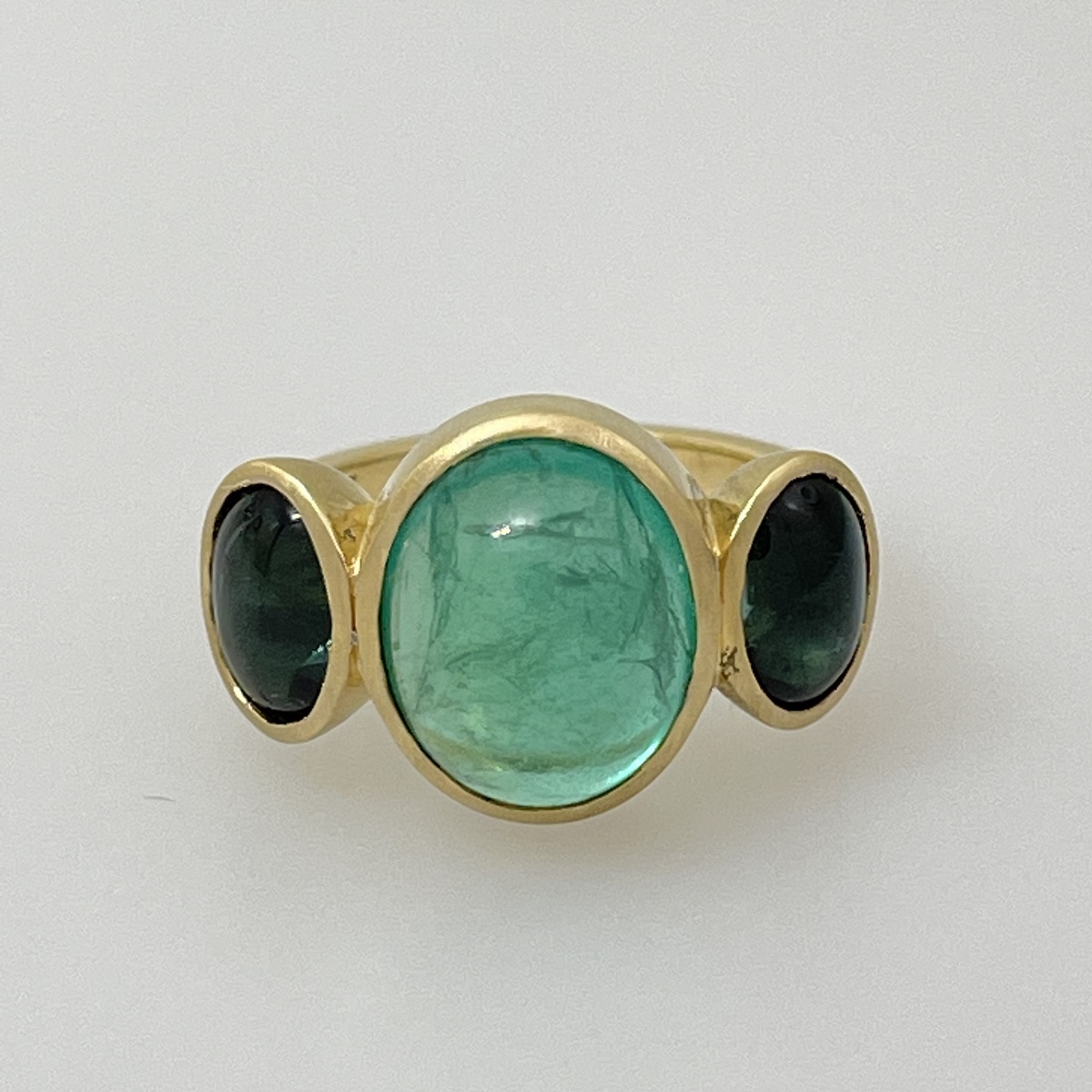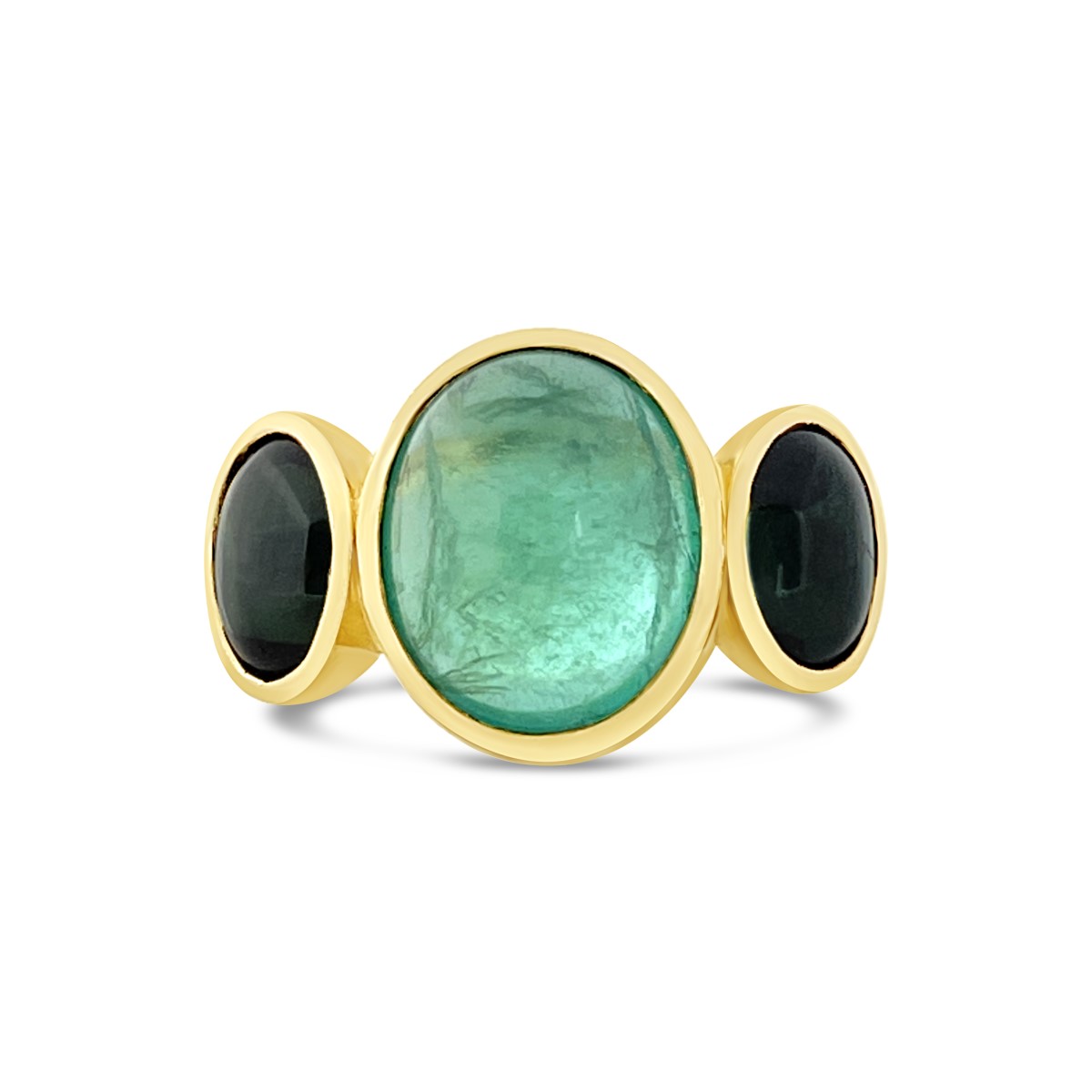 Cabochon Emerald and Tourmaline Evening Ring