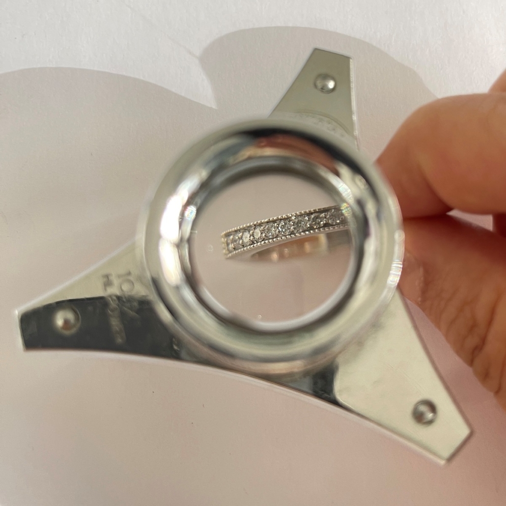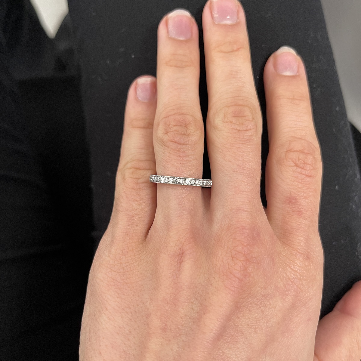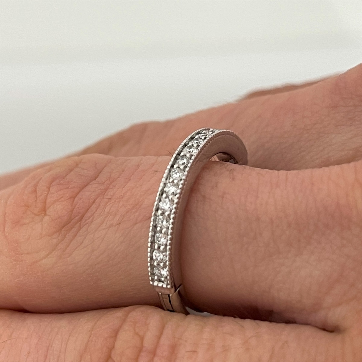 Custom made wedding band with expandable shank. Easy and comfortable to wear for the arthritis fingers.