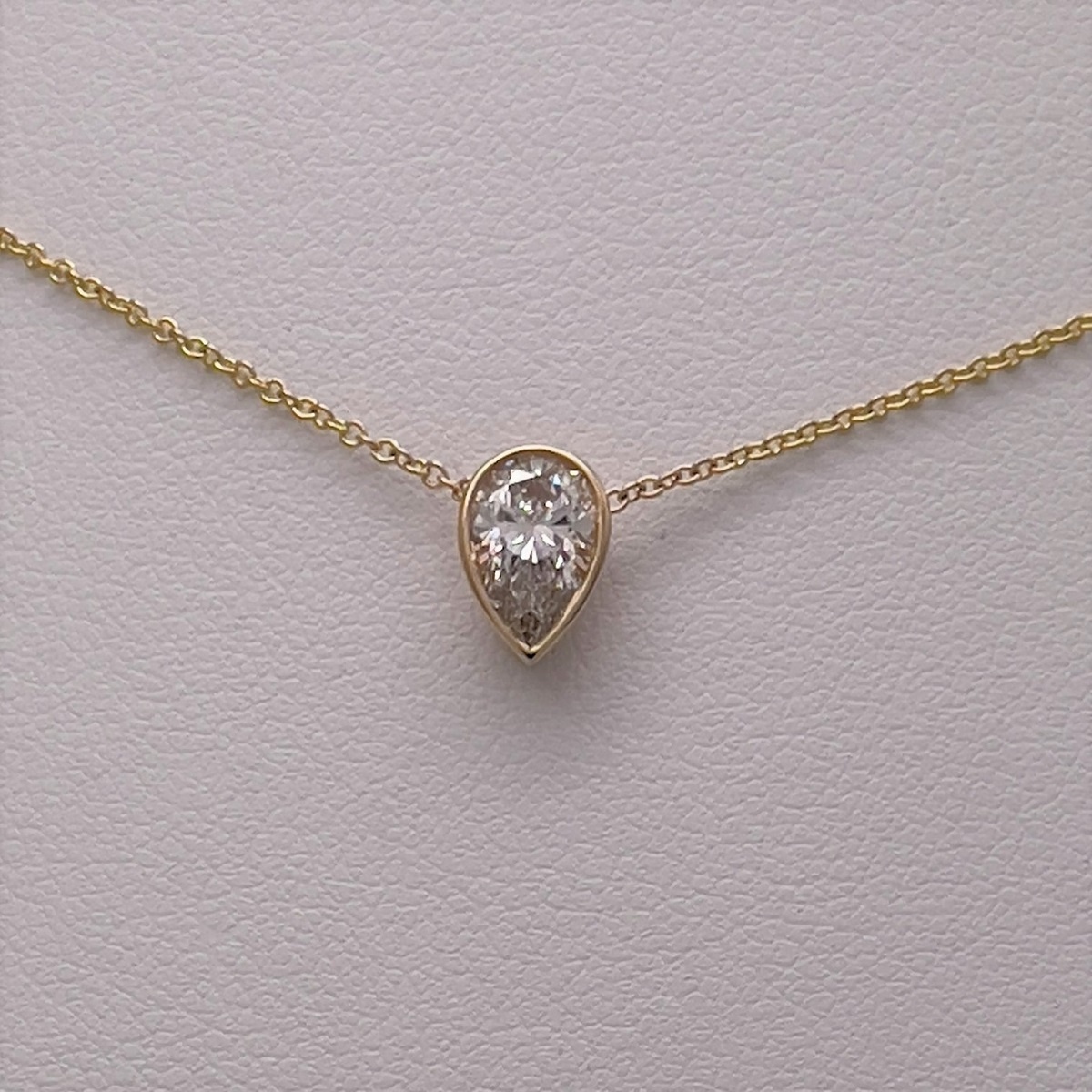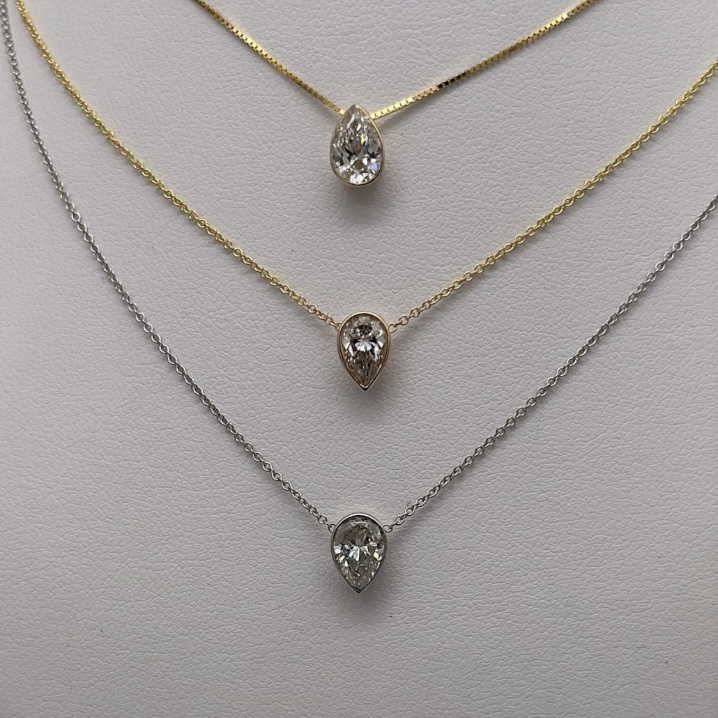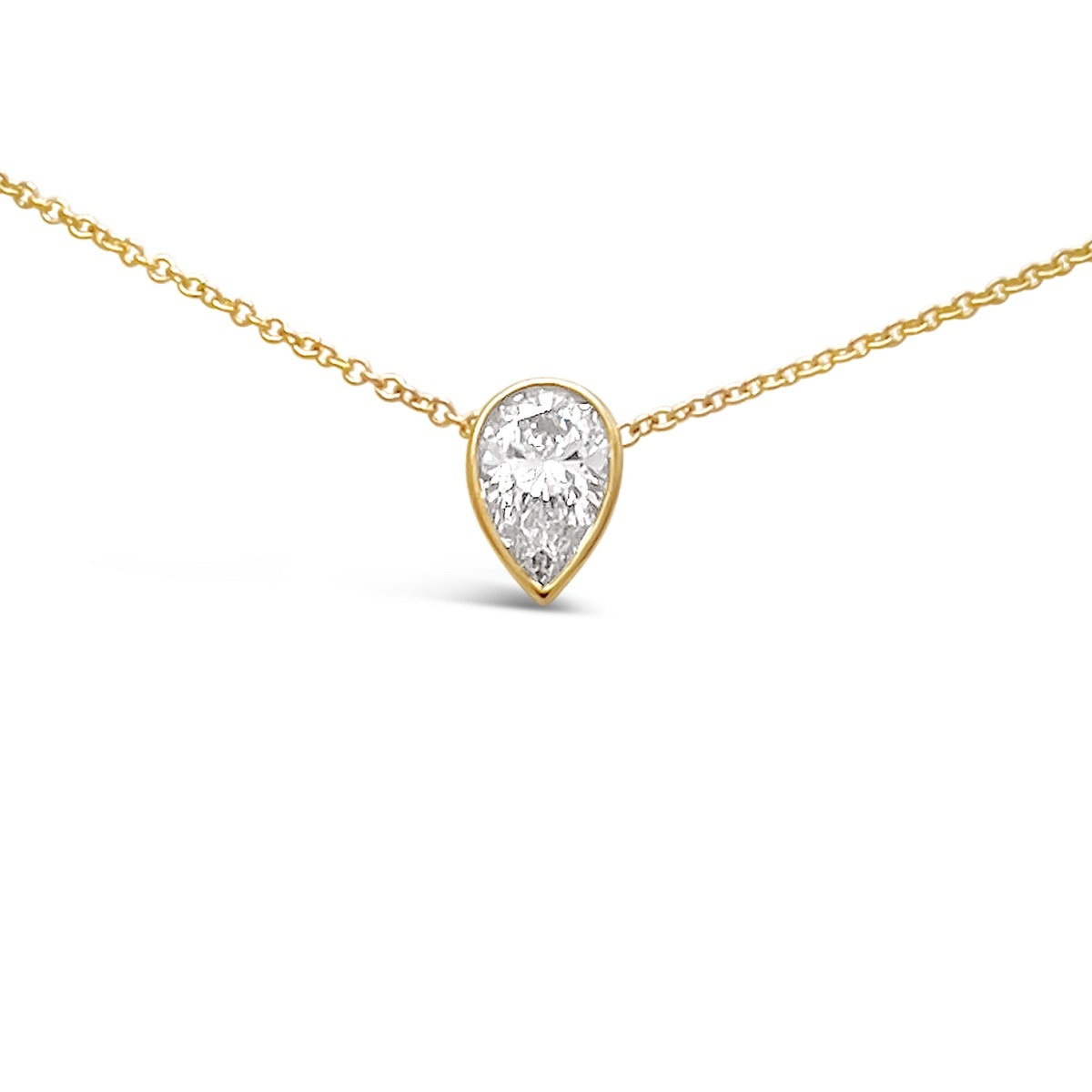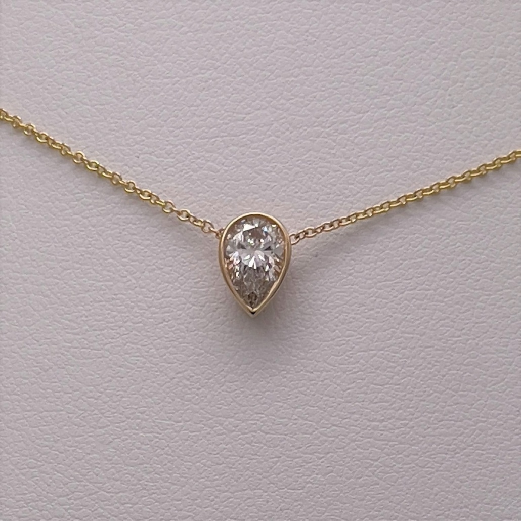 Diamond Pear Shape Necklace Set In A Bezel Clasp.