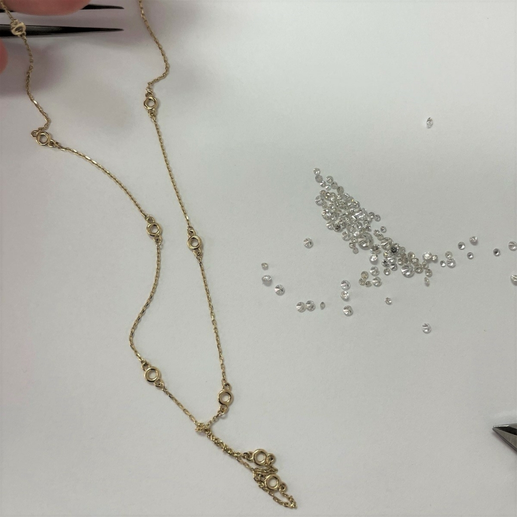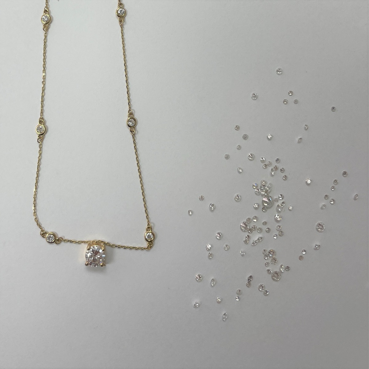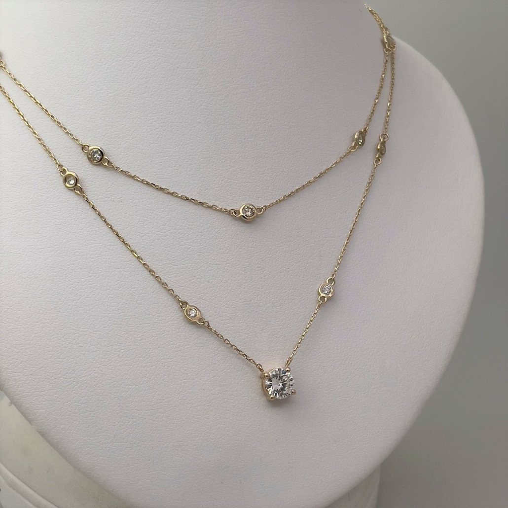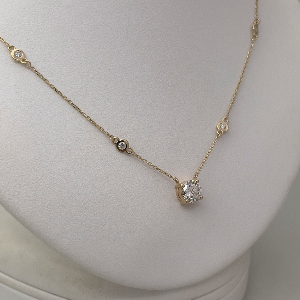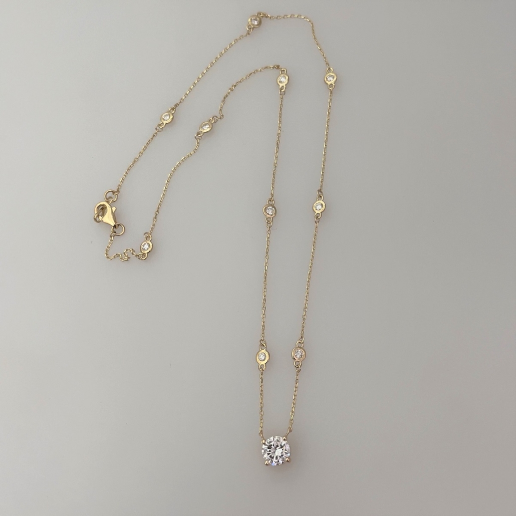 Tags 14K Yellow Gold Necklace, Custom Made Diamond Necklace, Diamond Necklace, Diamond Solitaire Necklace, Diamonds By The Yard, gold diamond necklace