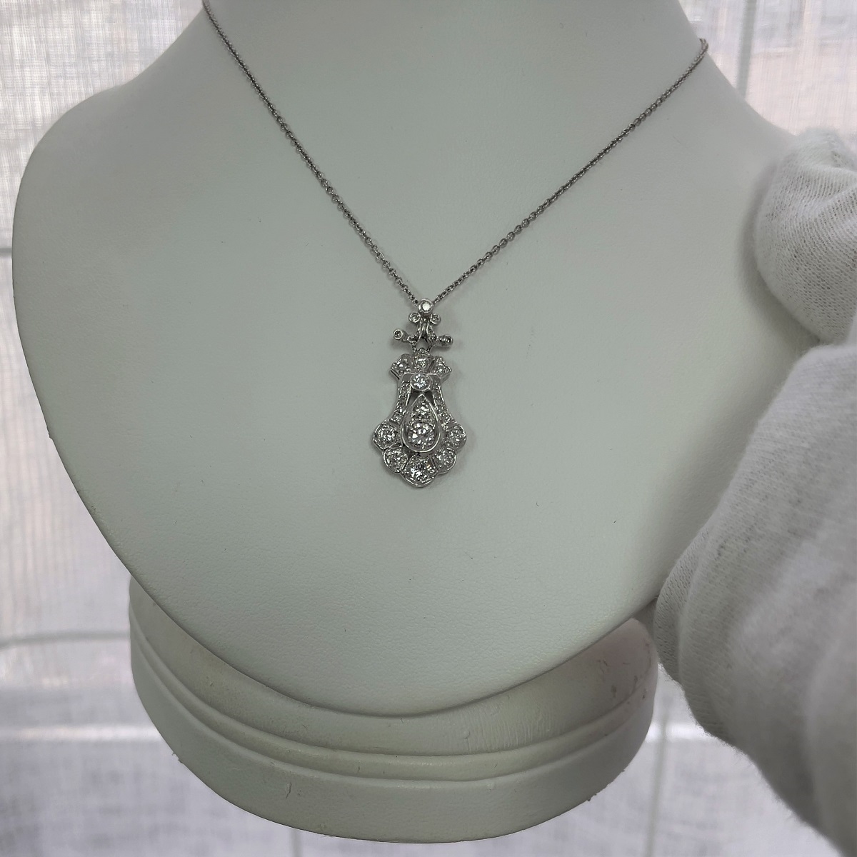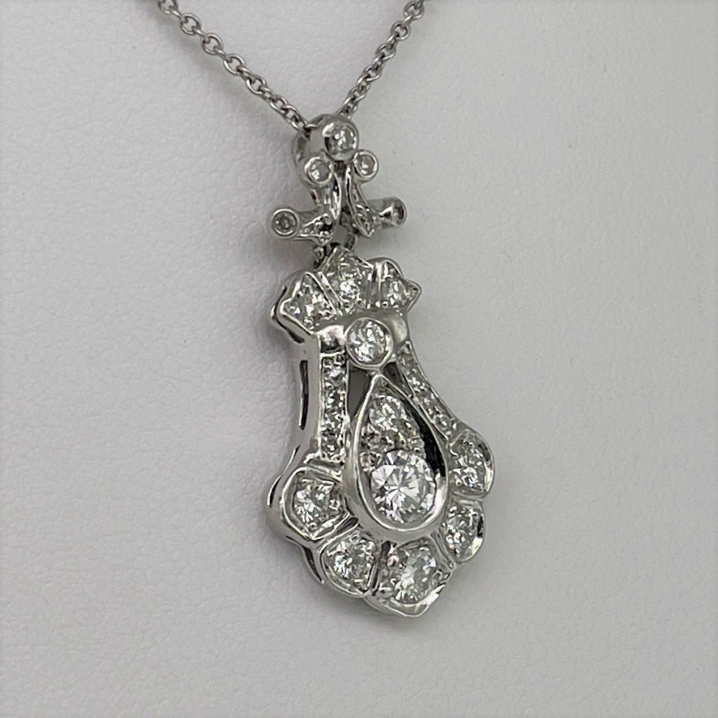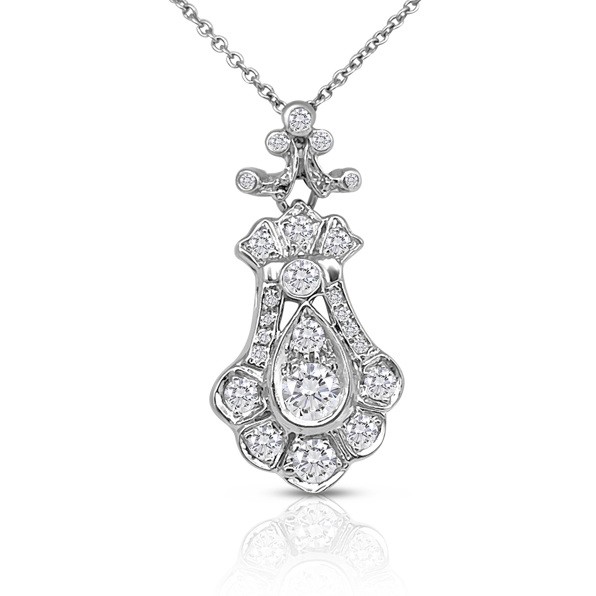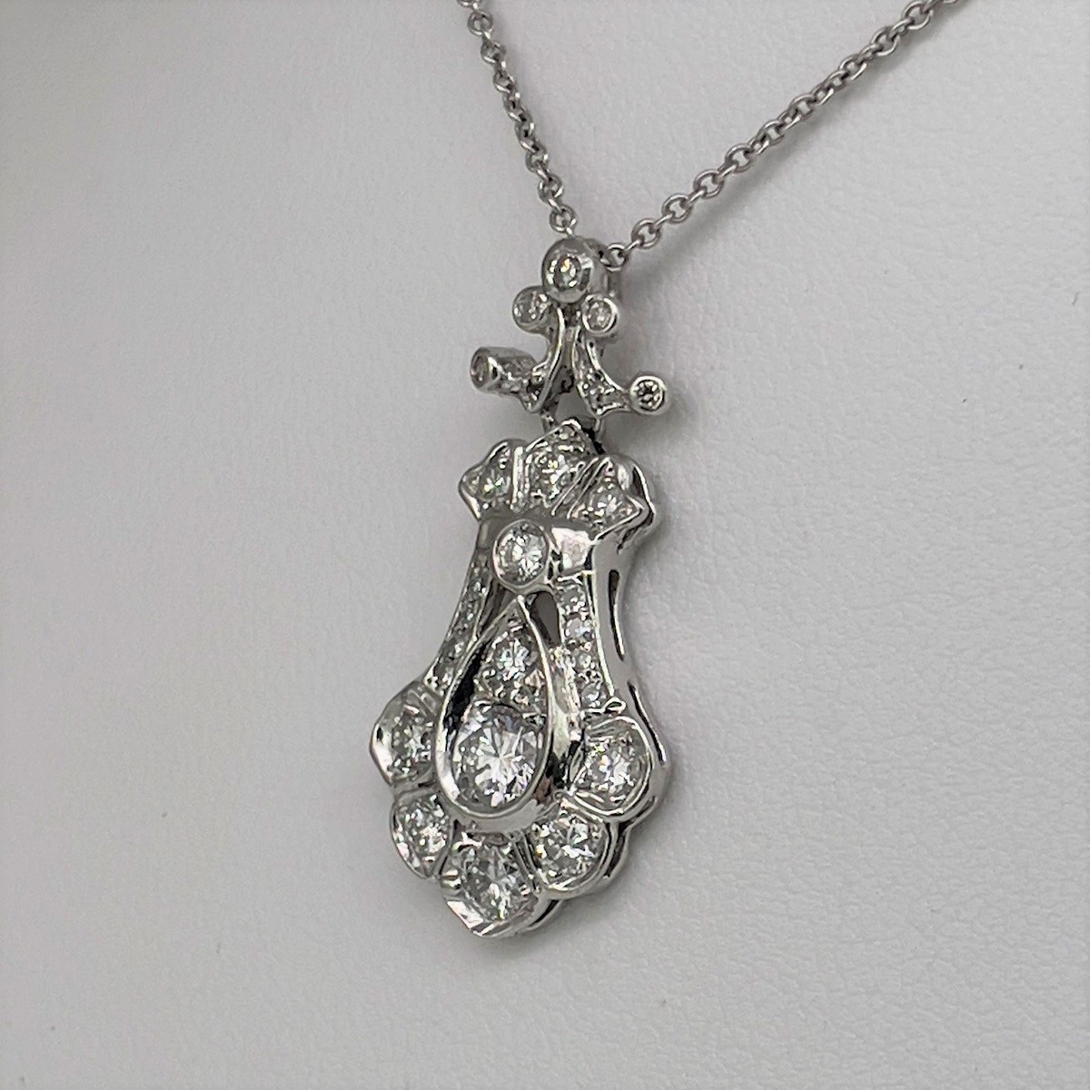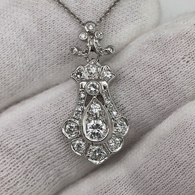 Vintage Style Dangle Pendant Decorated With Round Brilliant Diamonds In Platinum