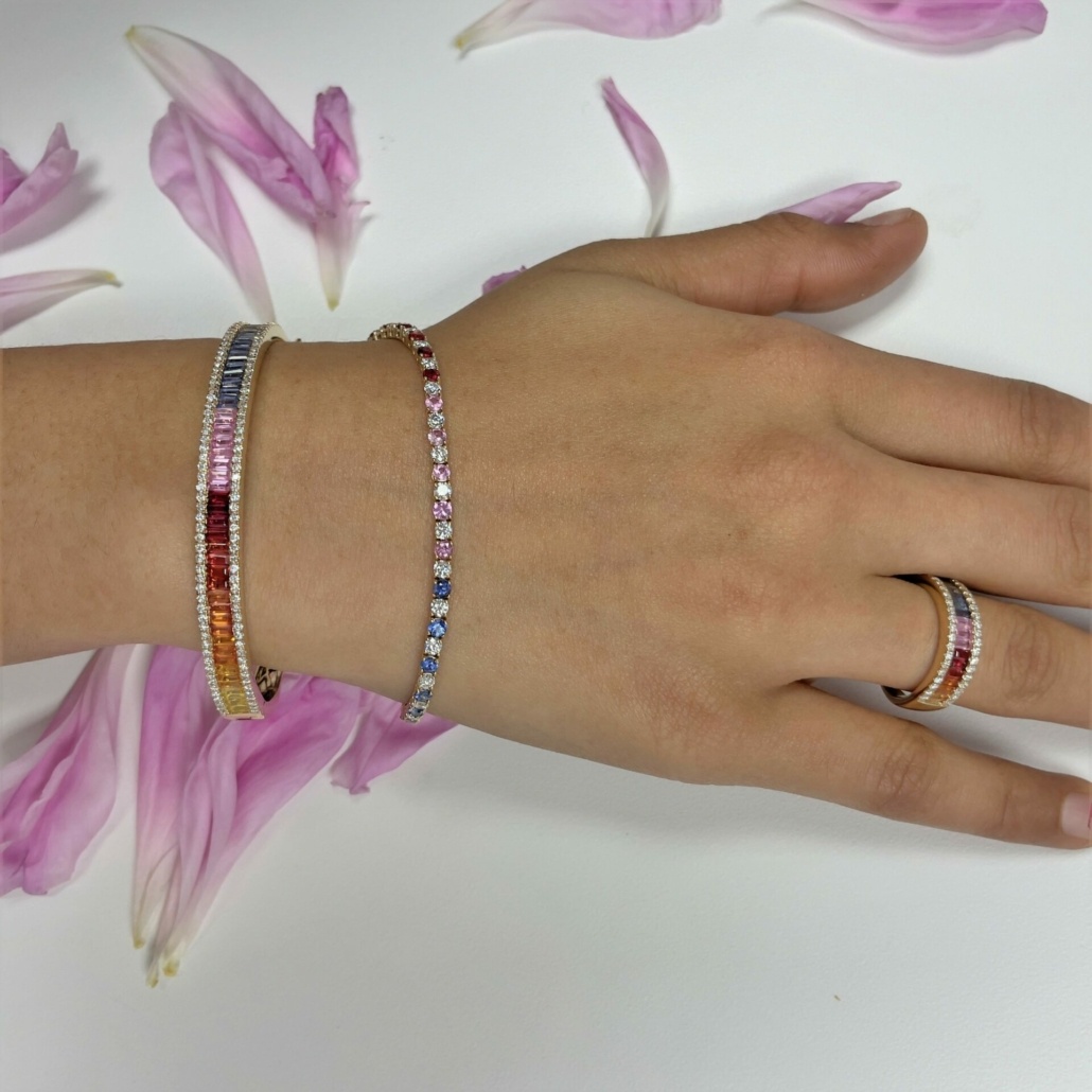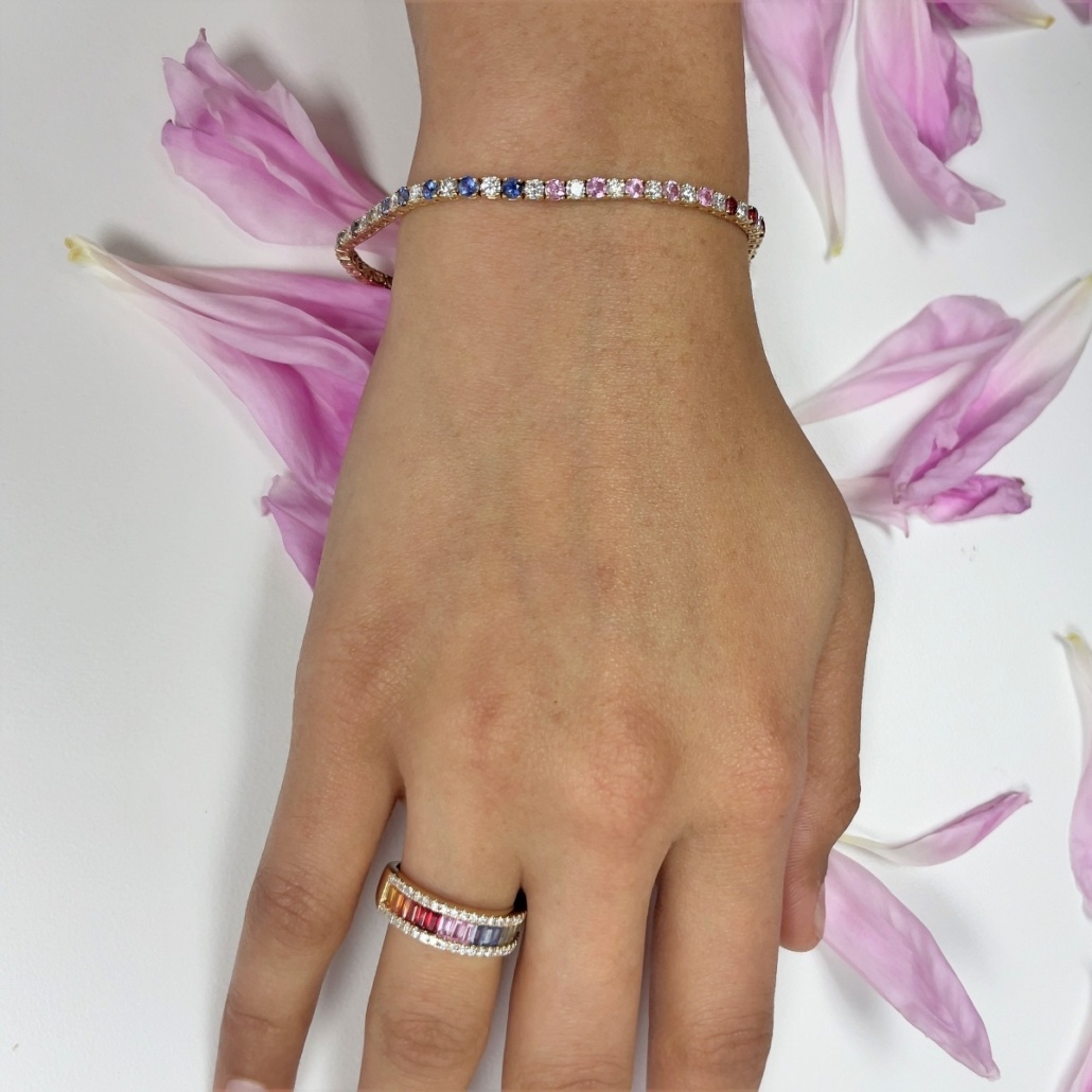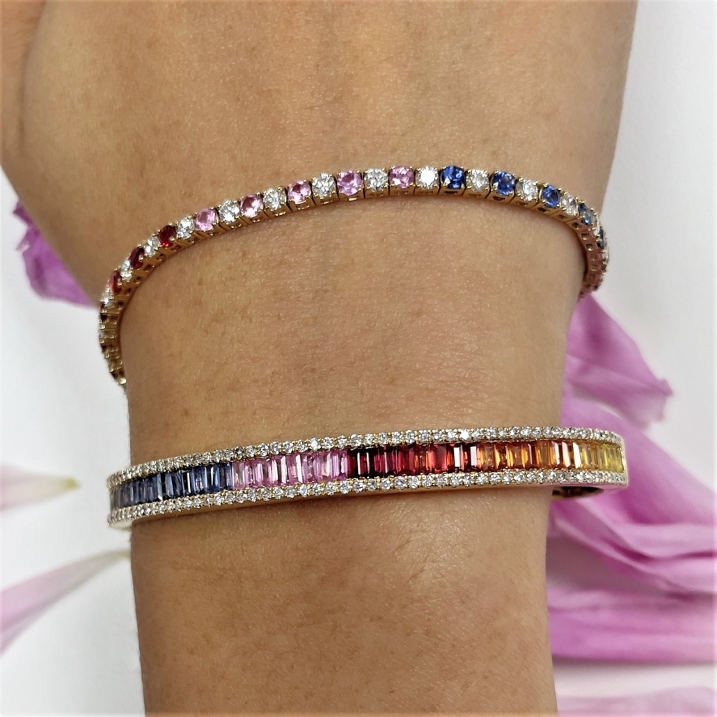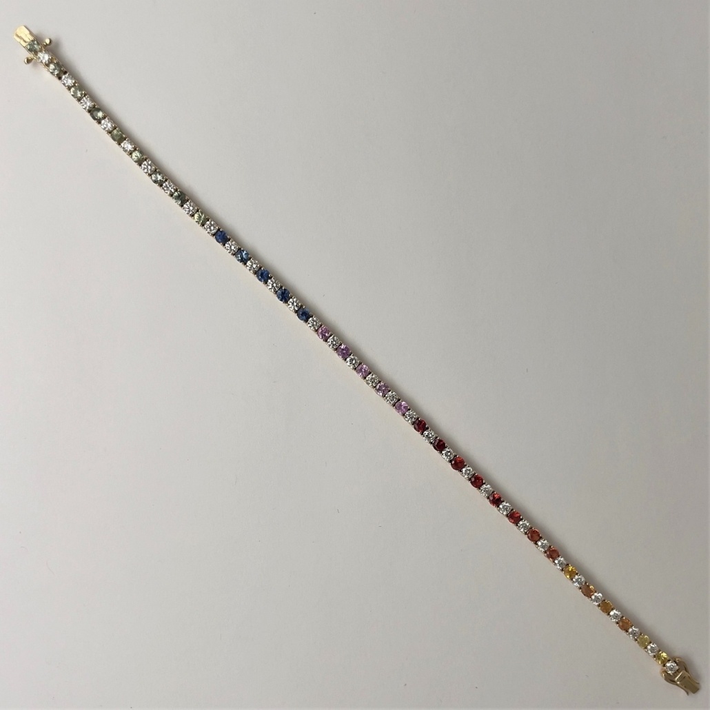 Tags Multi Color Bracelet, Multi-Colors Sapphire, Rainbow Bracelet, Rainbow Tennis Bracelet, Sapphire Bracelet, Sapphire Links Bracelet, Yellow Gold Sapphire Bracelets