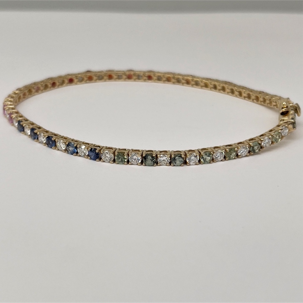 Categories 14K Yellow, Bracelets, Diamonds, Fine Jewelry, Gemstones, InLine Bracelets, Master Bracelet, Master Stone, Master Stone 2, Metal Type, Ready to Buy, Sapphire, Yellow Gold