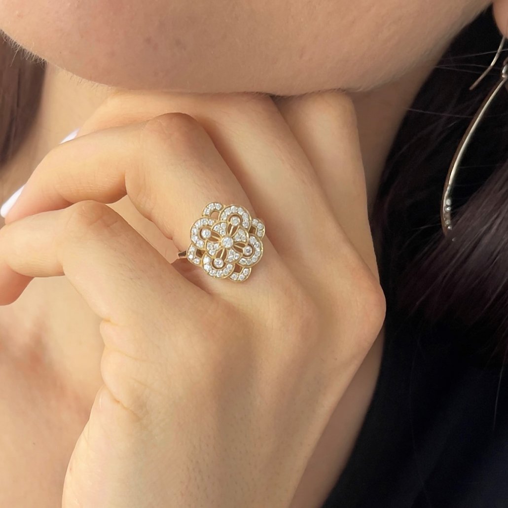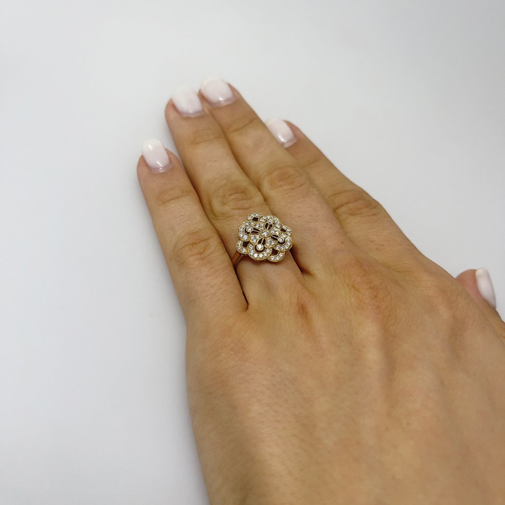 Tags 14K Yellow Gold, Art Deco Flower Ring, Art Deco Ring, Diamond, Diamonds, Fine Jewelry, Floral Ring, Flower Design Ring, flower ring., Golden Diamond Ring, Golden Ring, Holiday Gift, Master Ring, Master Stone, Ring, Vintage, Vintage Style Ring, yellow gold