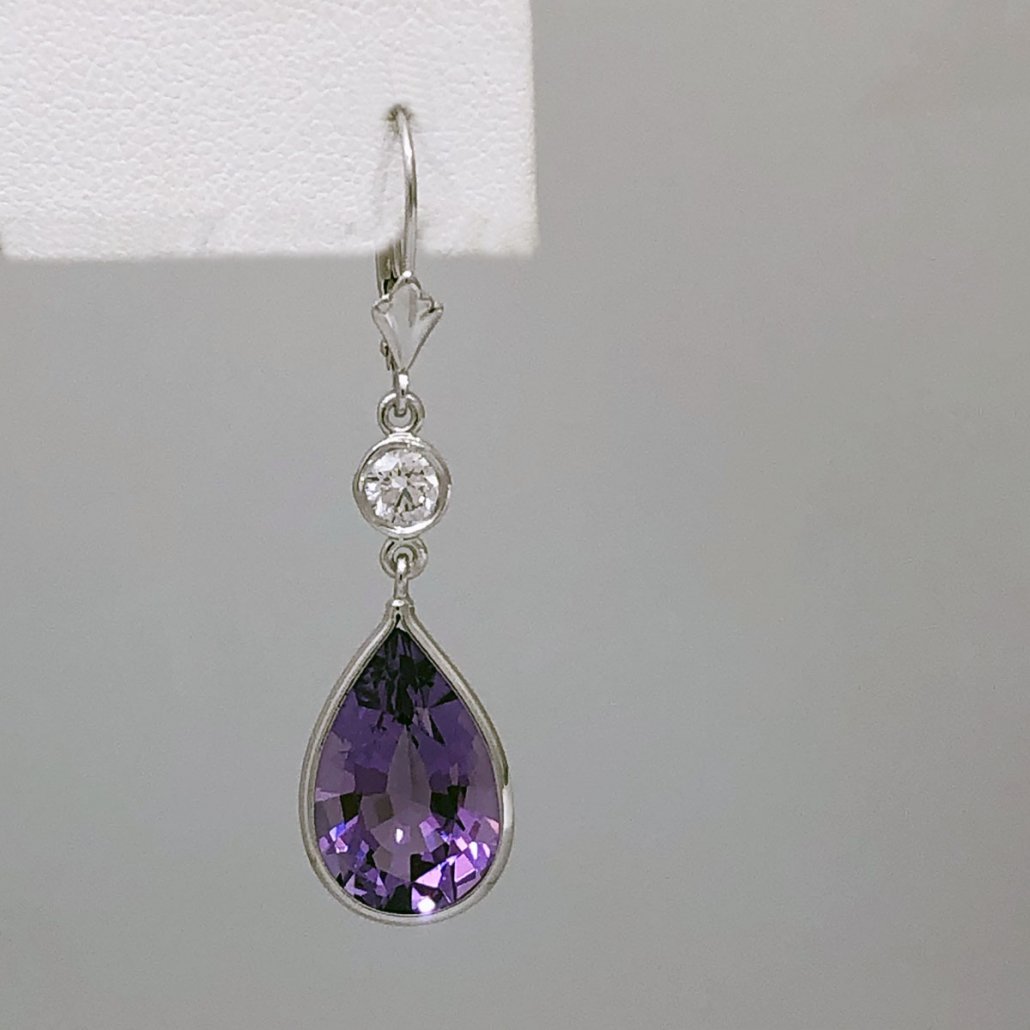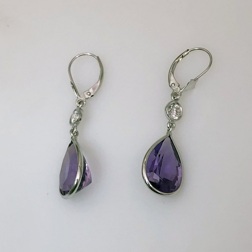 Tags 14k White Gold, Amethyst, Birthday, Create Your Own Pair, Dynamic Dangling Earrings, February Birthstone, GJ Original Designs, Grants Jewelry Original, Lab Grown Diamonds, Mother's Day