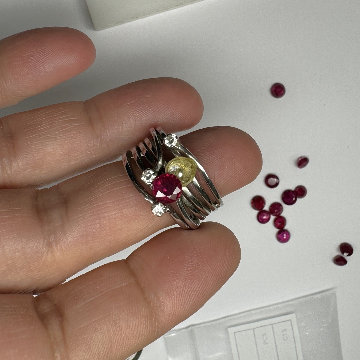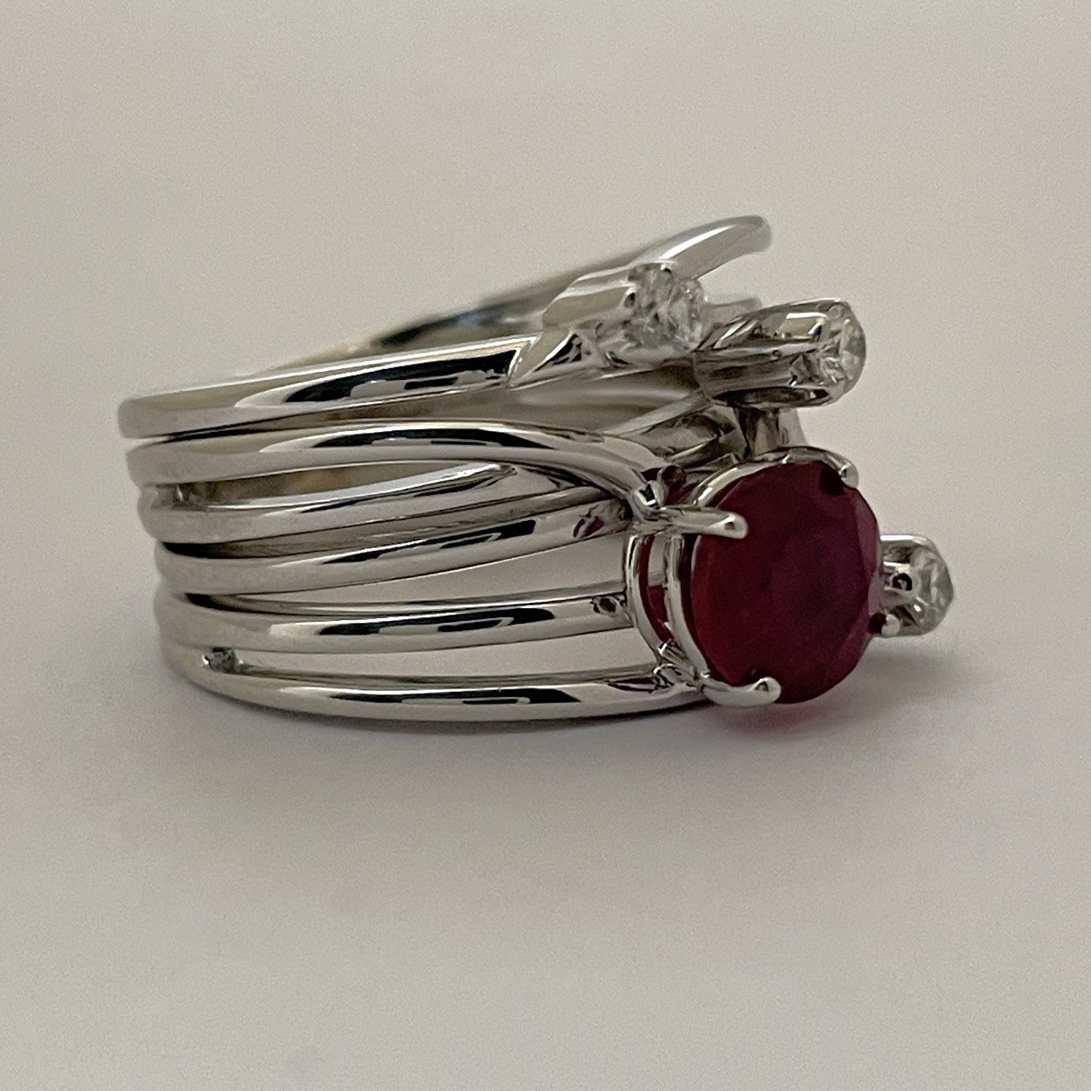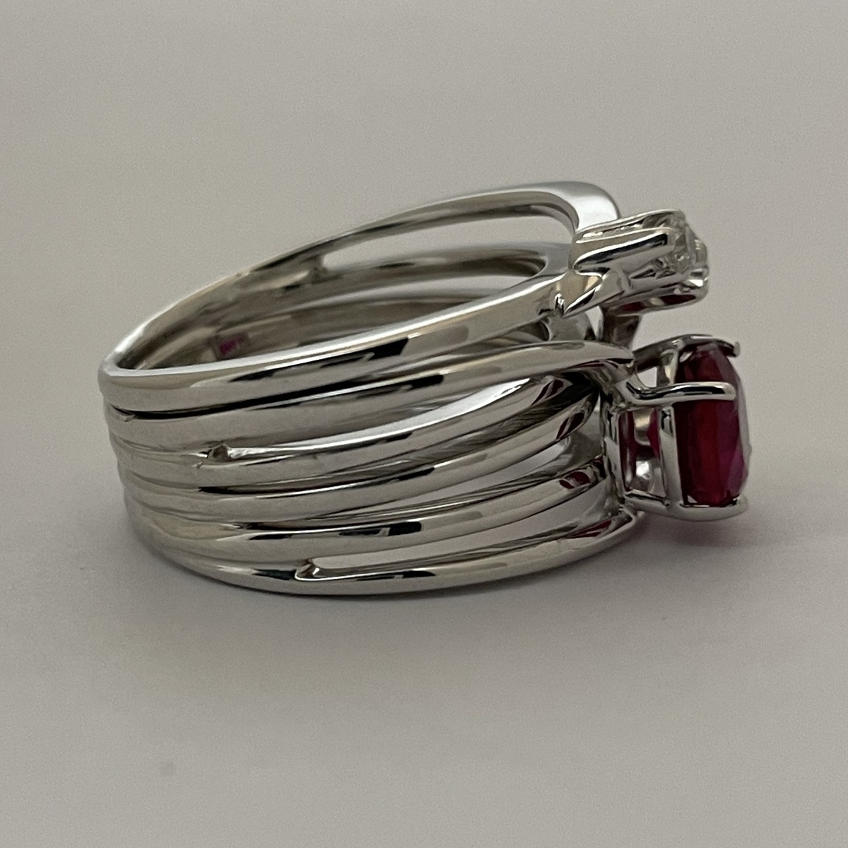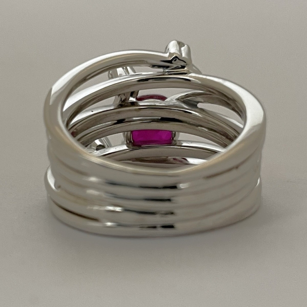 Each strand dances around the finger like a melody, with the ruby glowing like a heart of fire. A modern statement of elegance and passion, perfect for someone with a bold spirit and timeless taste.