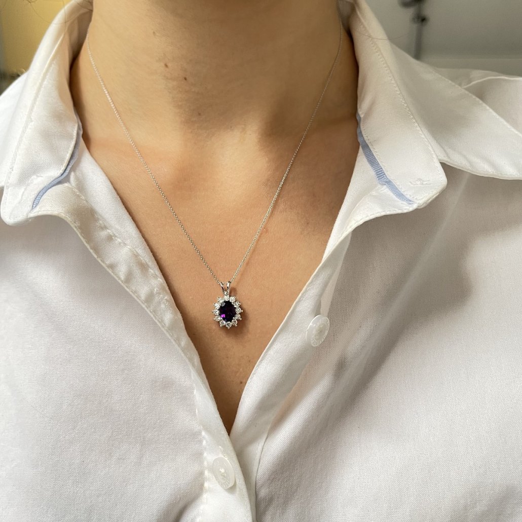 Tags 14k White Gold, Amethyst, Amethyst and Diamond, Pendant