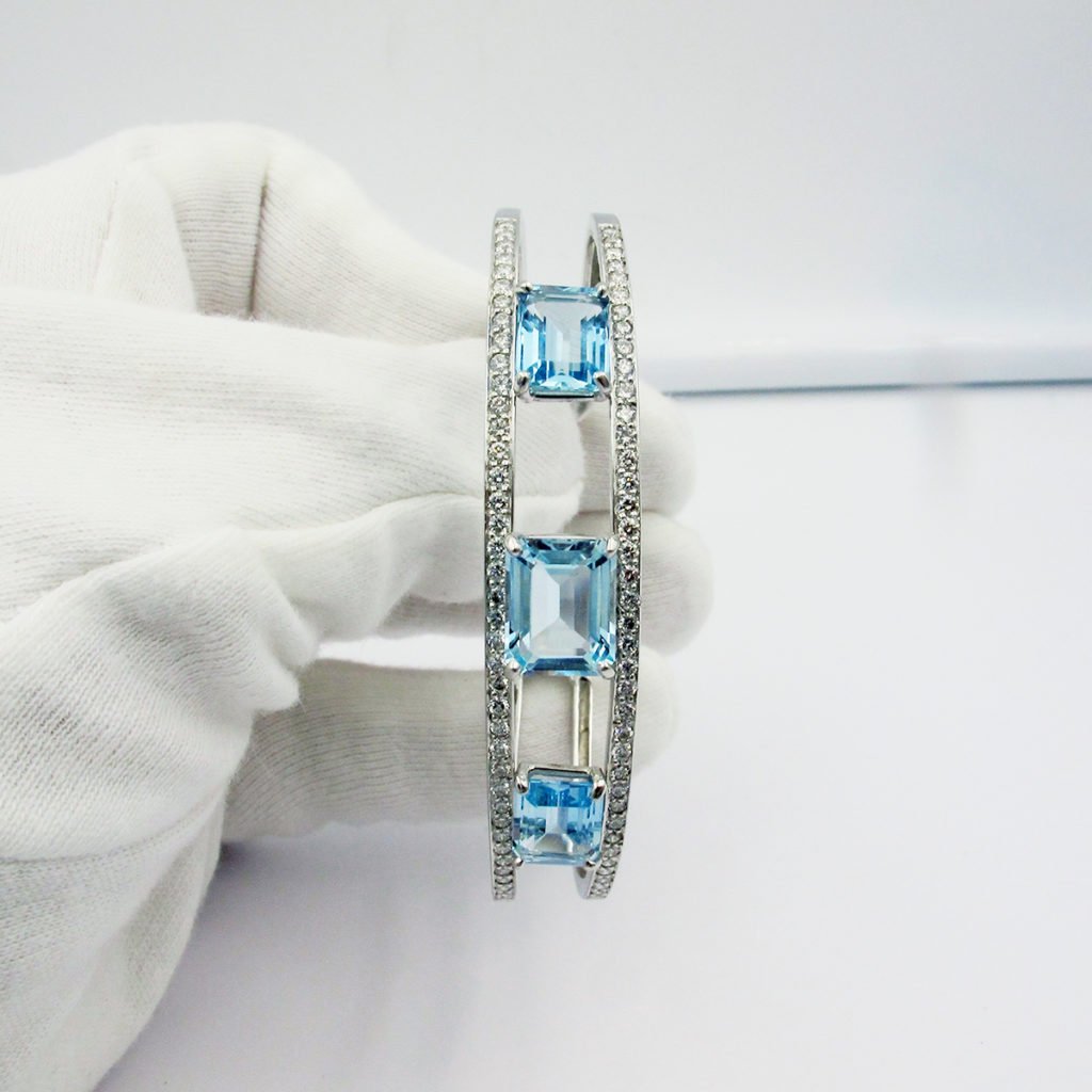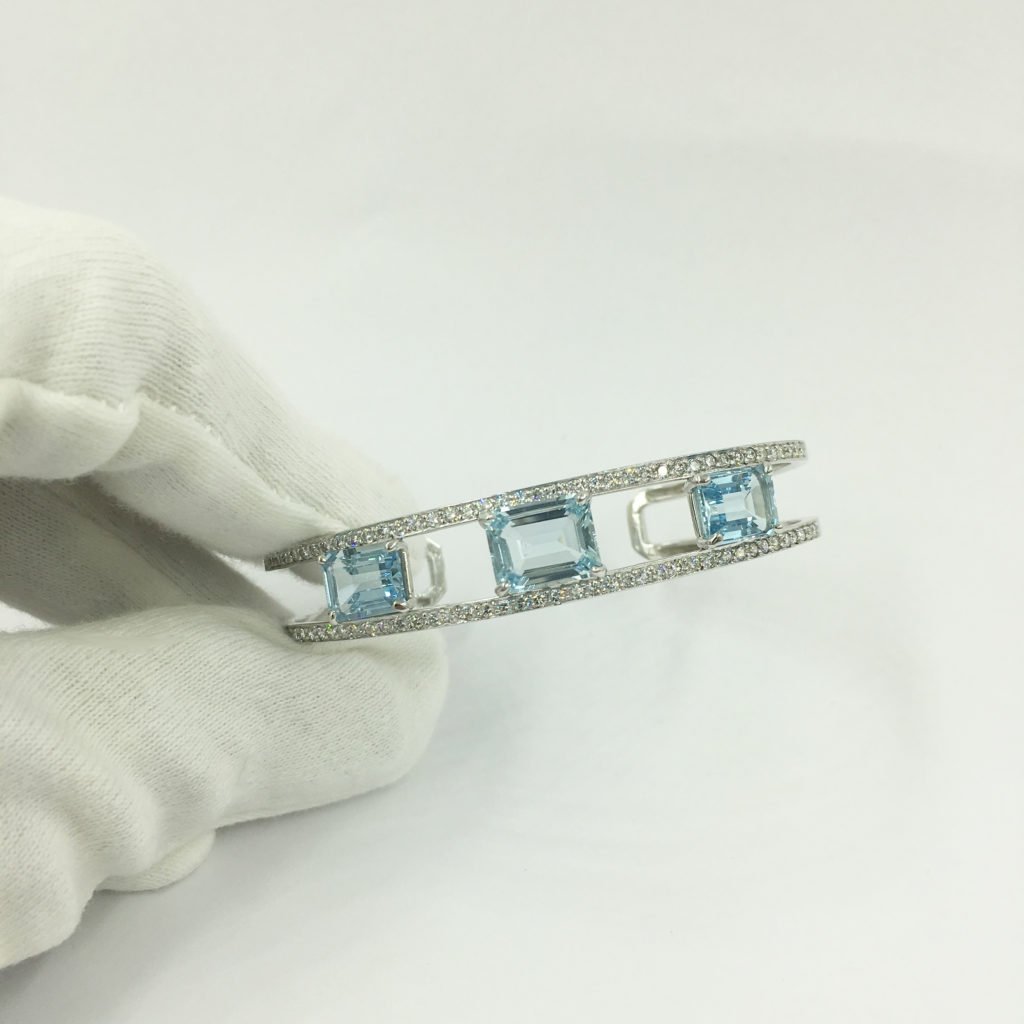 Categories 18K White, Aquamarine, Bangle & Cuff Bracelets, Custom Bracelet Not Avail, Custom Design, Diamonds, Fine Jewelry, Gemstone Bracelets, Gemstones, Master Bracelet, Master Stone, Master Stone 2, Metal Type