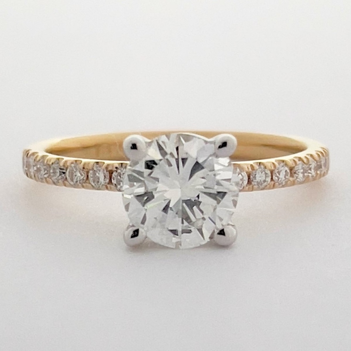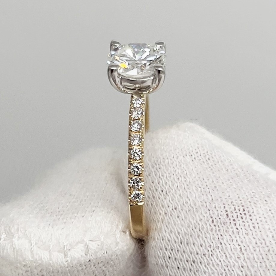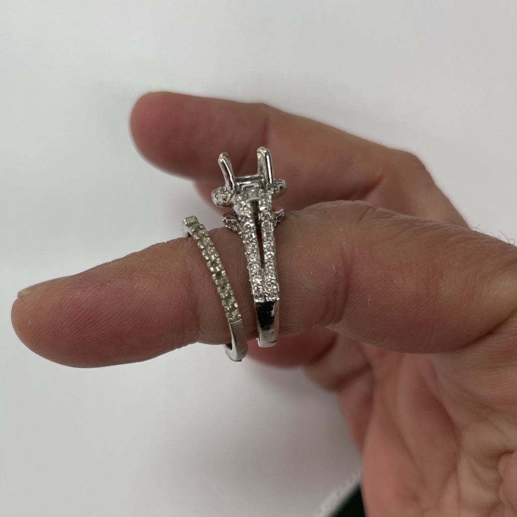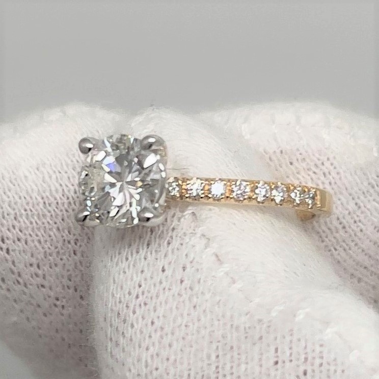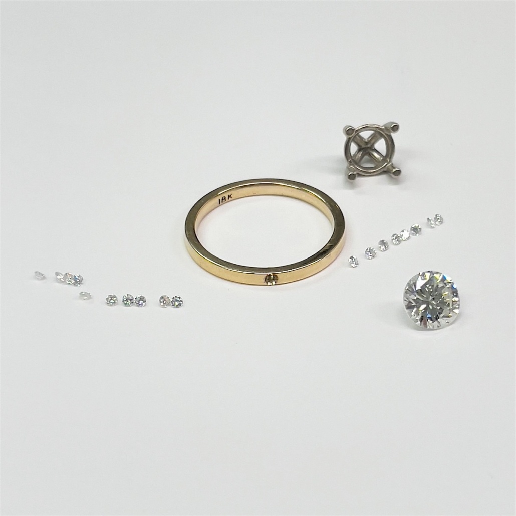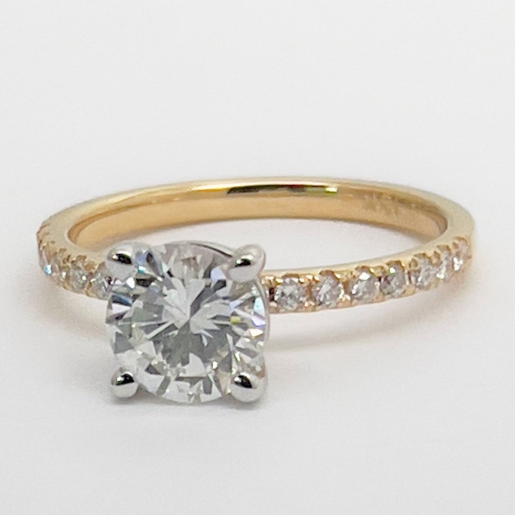 Diamond engagement ring made with 14k white gold head and 18k yellow gold shank. The natural mined diamonds in this ring were passed down through family, making this engagement even more special.