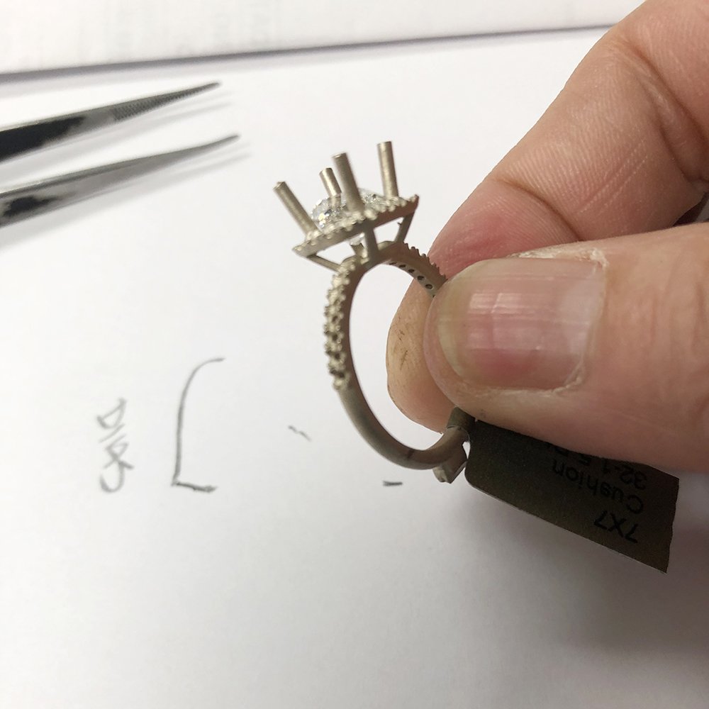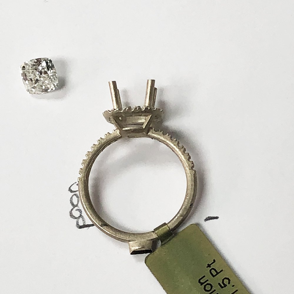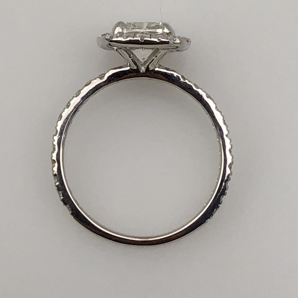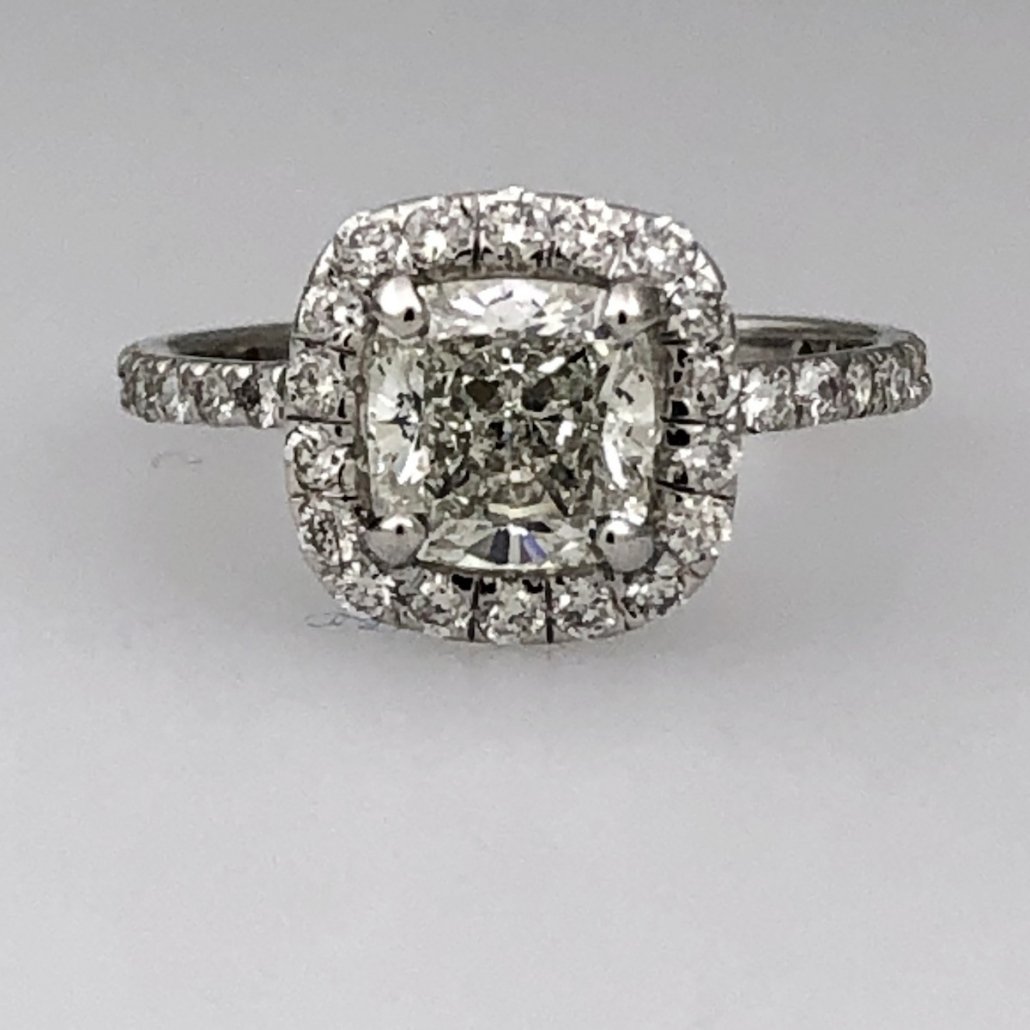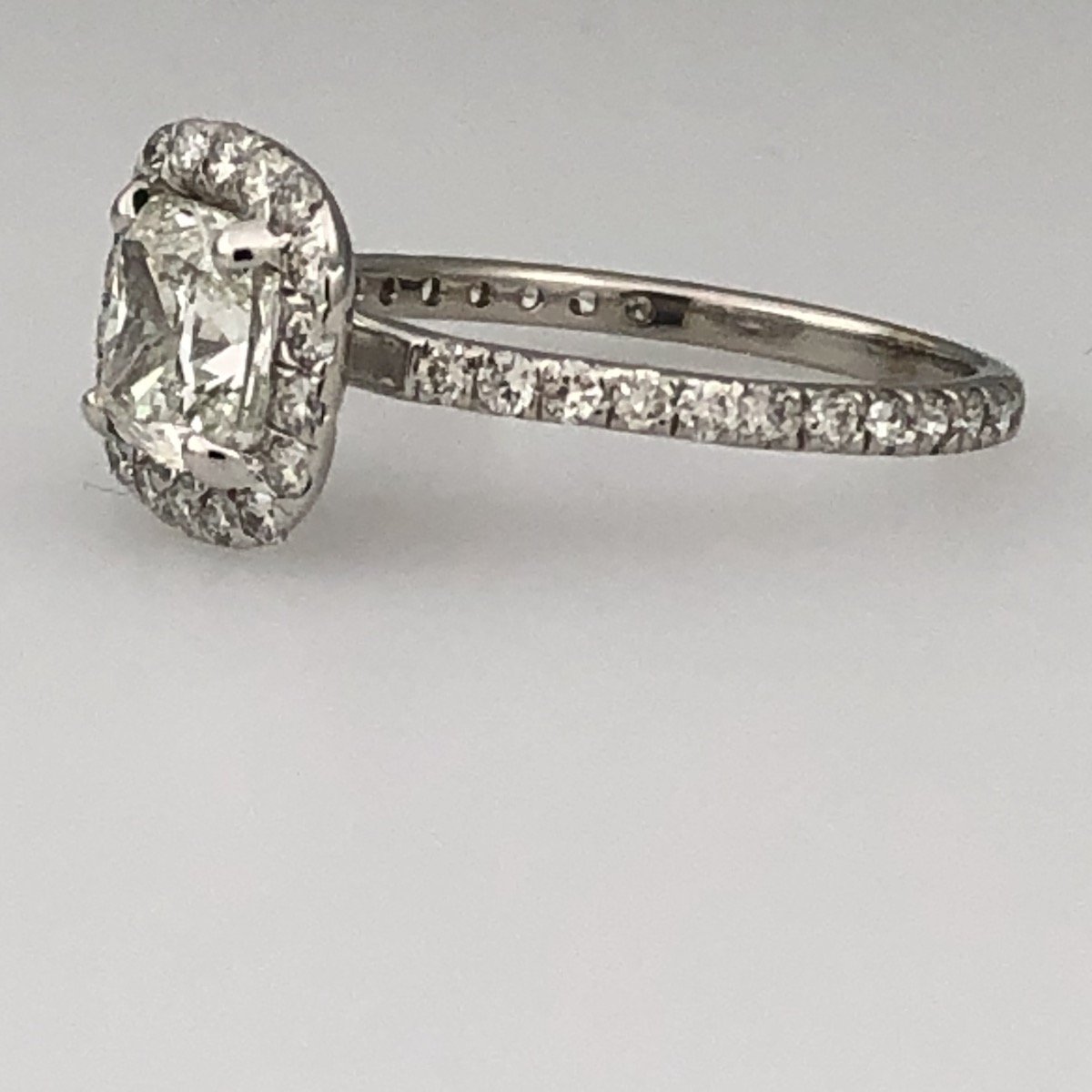 Tags 14k White Gold, Cushion Cut Center Stone, Custom Engagement Ring, Diamonds on Shank, GIA Certified Diamond, Halo Setting, One Of A Kind Engagement Ring