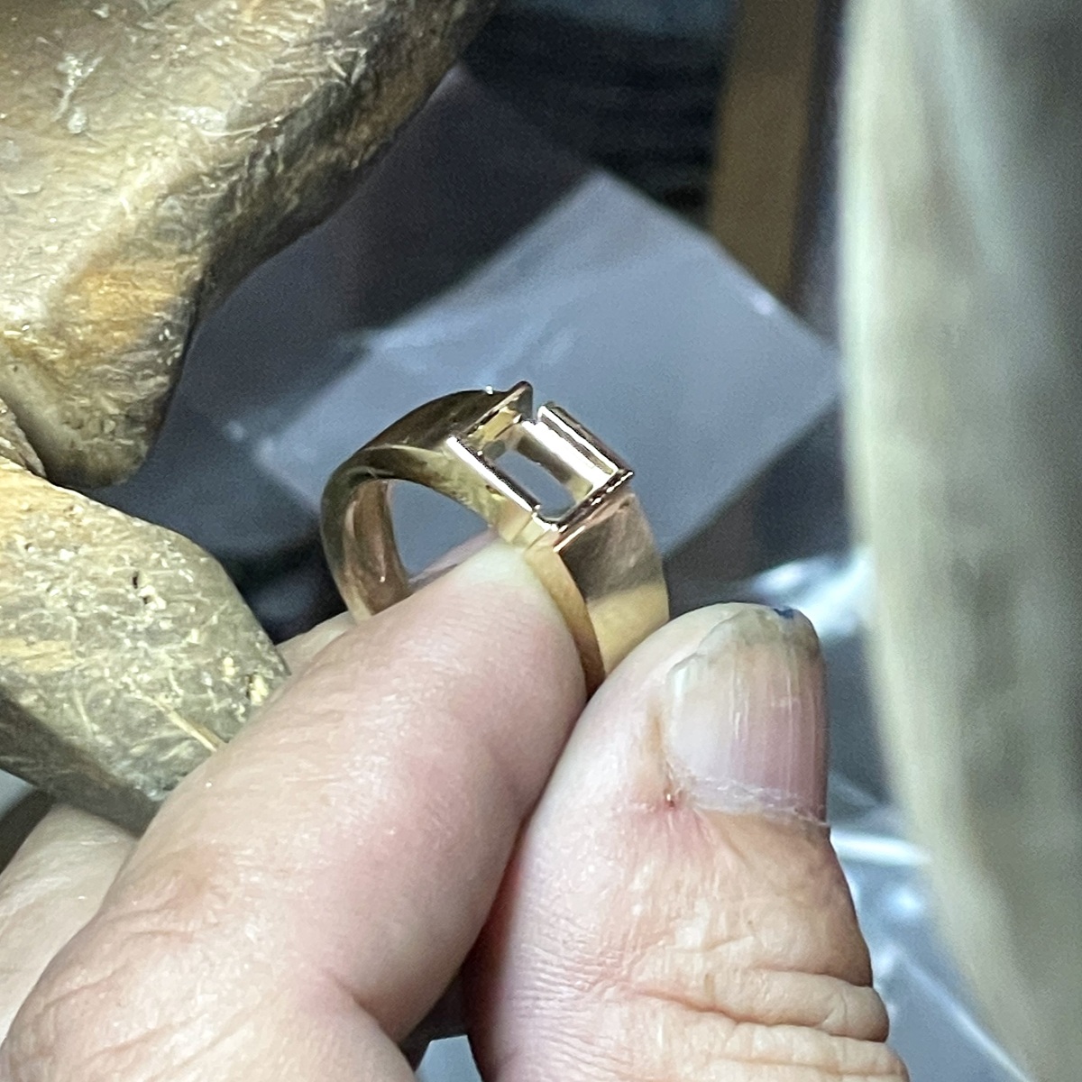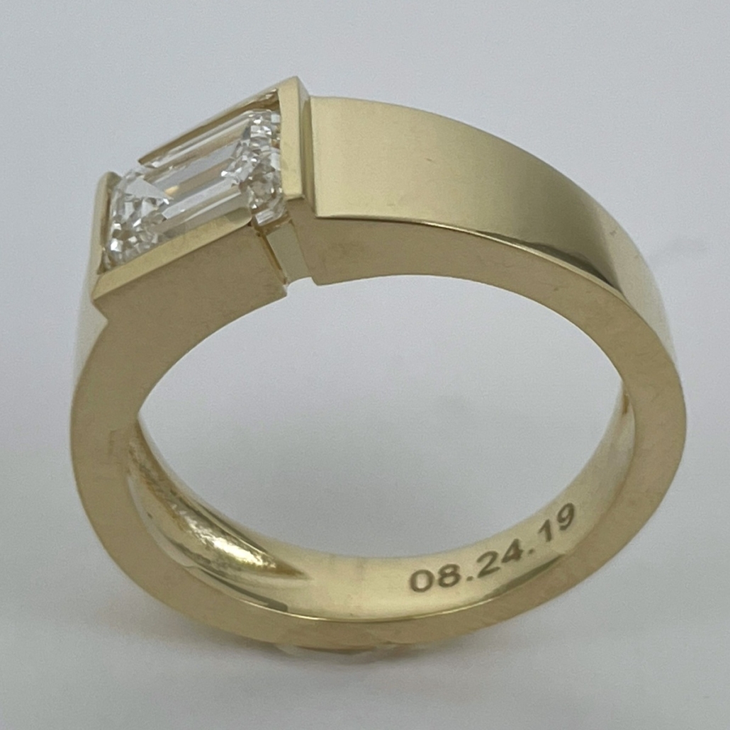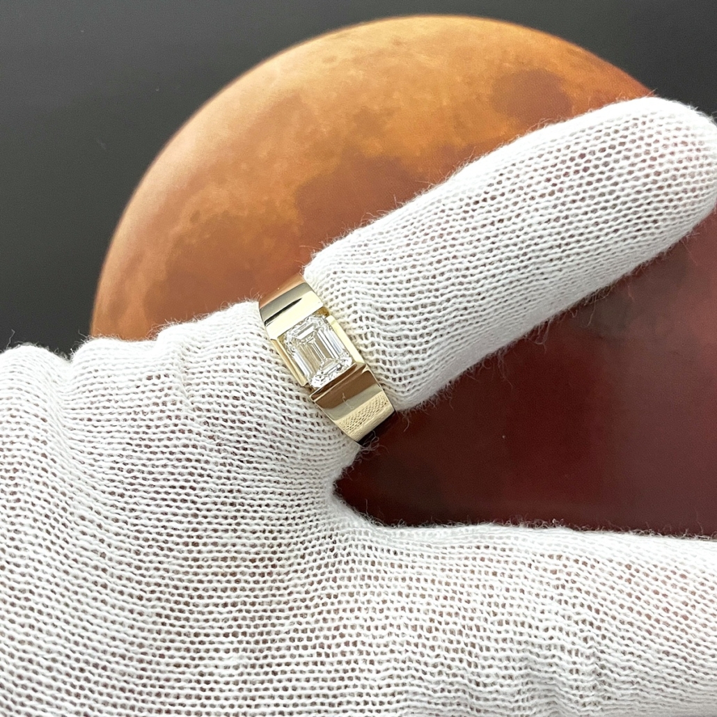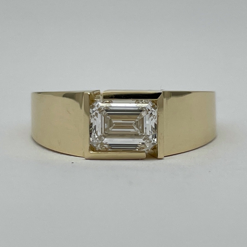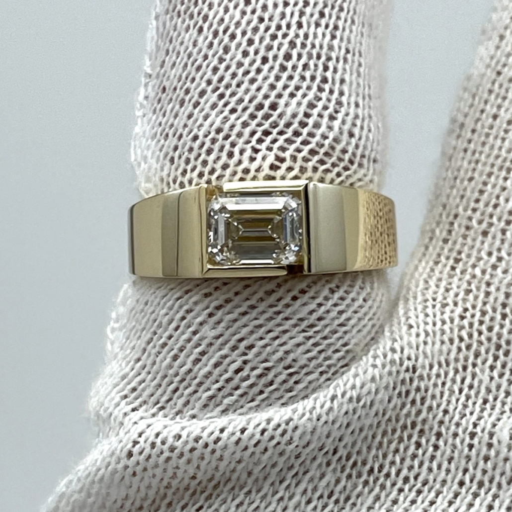 Tags 14k Yellow, Art Deco, Channel Set, Diamond, emerald cut, Gentlemen's, Pinky Ring